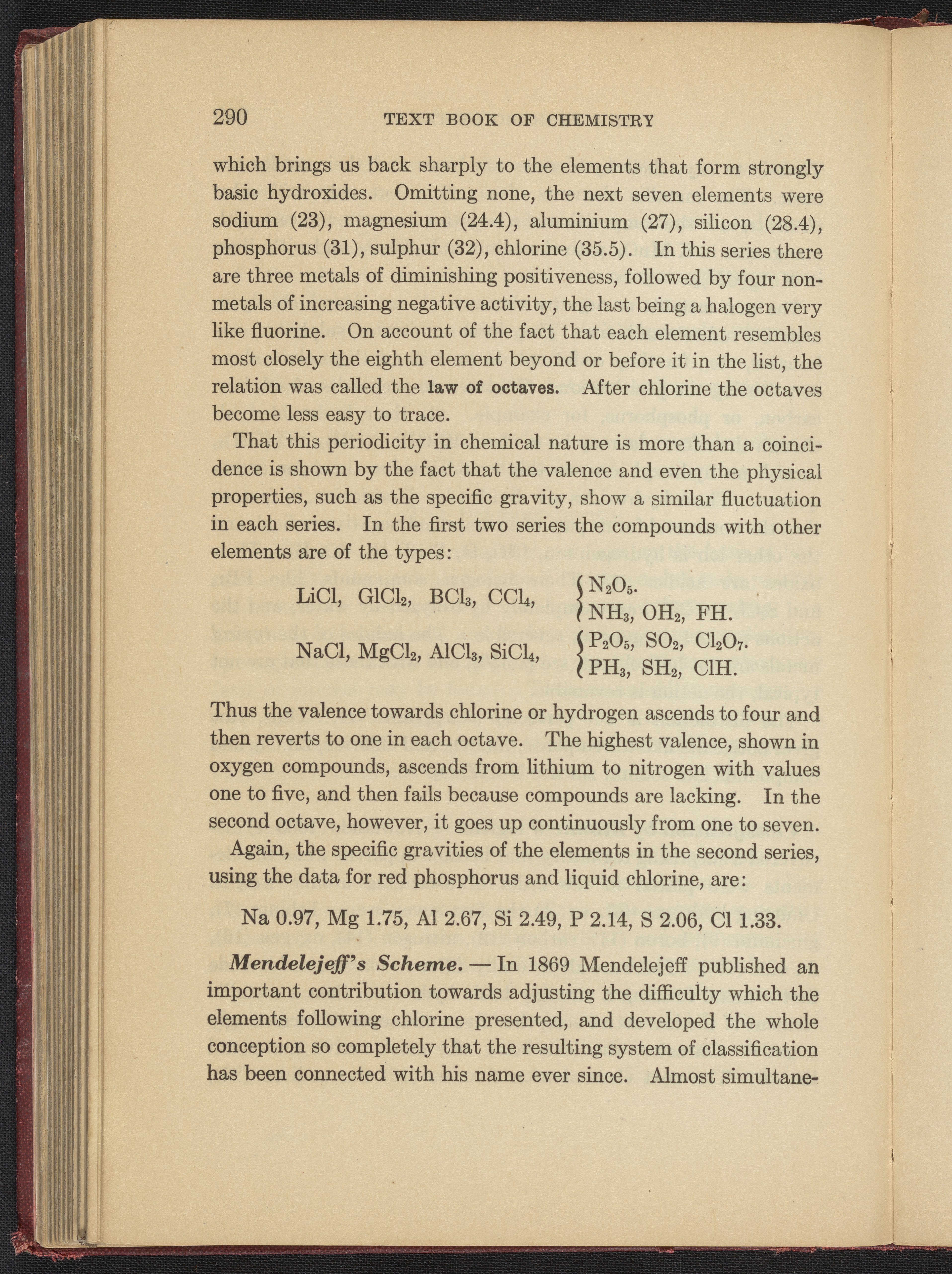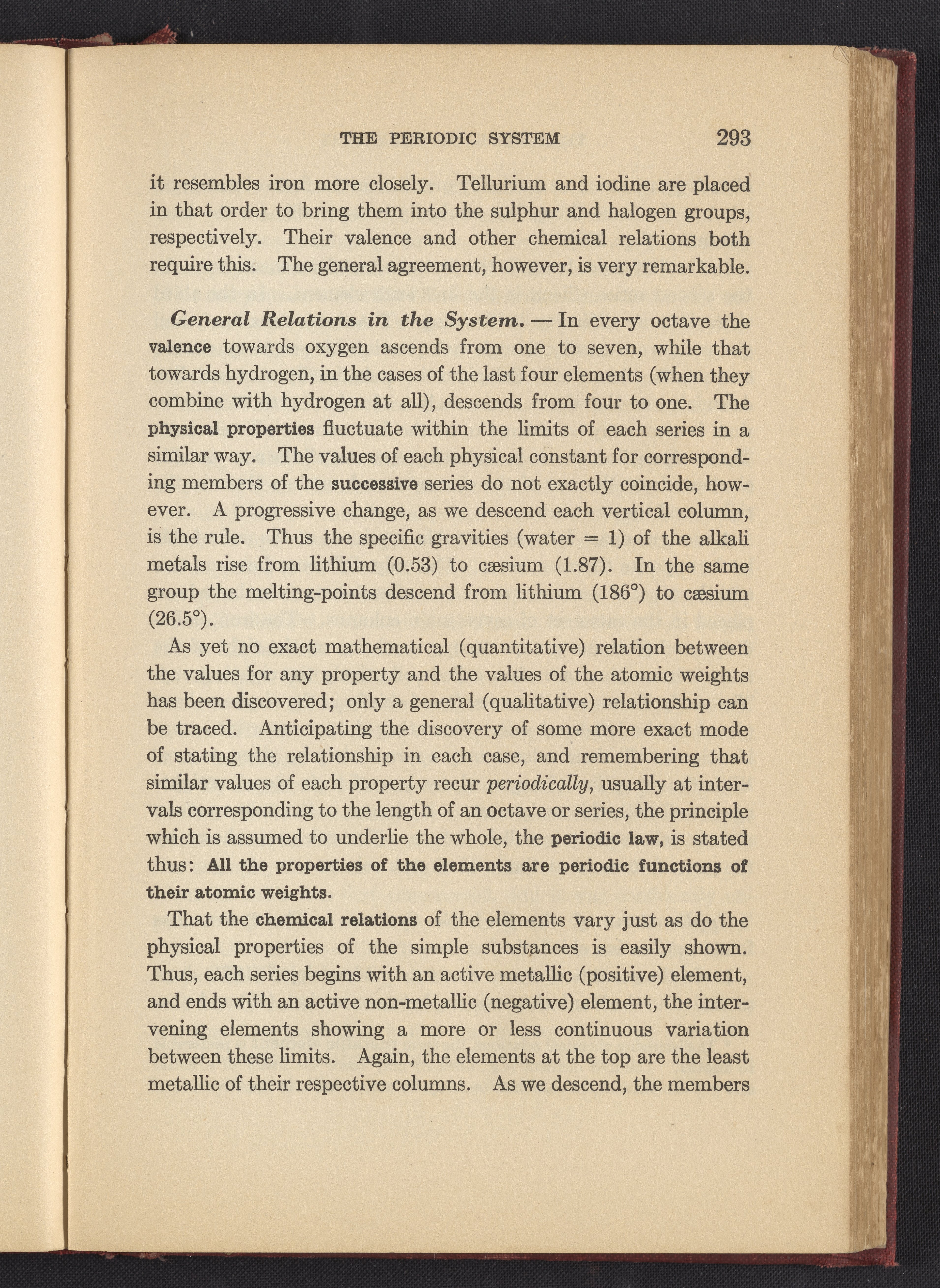 Small JPG1200 x 1810px — 296 KBLarge JPG2880 x 4343px — 2.1 MBFull-sized JPG3470 x 5233px — 3.0 MBOriginal fileTIFF — 3470 x 5233px — 52.0 MBPreface describes how this chemistry textbook contains an intermediate level of instruction, being more advanced than elementary chemistry but not as comprehensive as college chemistry. The modified periodic table of elements found within this work differs from Dmitry Ivanovich Mendeleyev's (1834-1907) version as explained in the text. Only the pages pertaining to the modified periodic table of elements and a selection of plates have been digitized from this work.