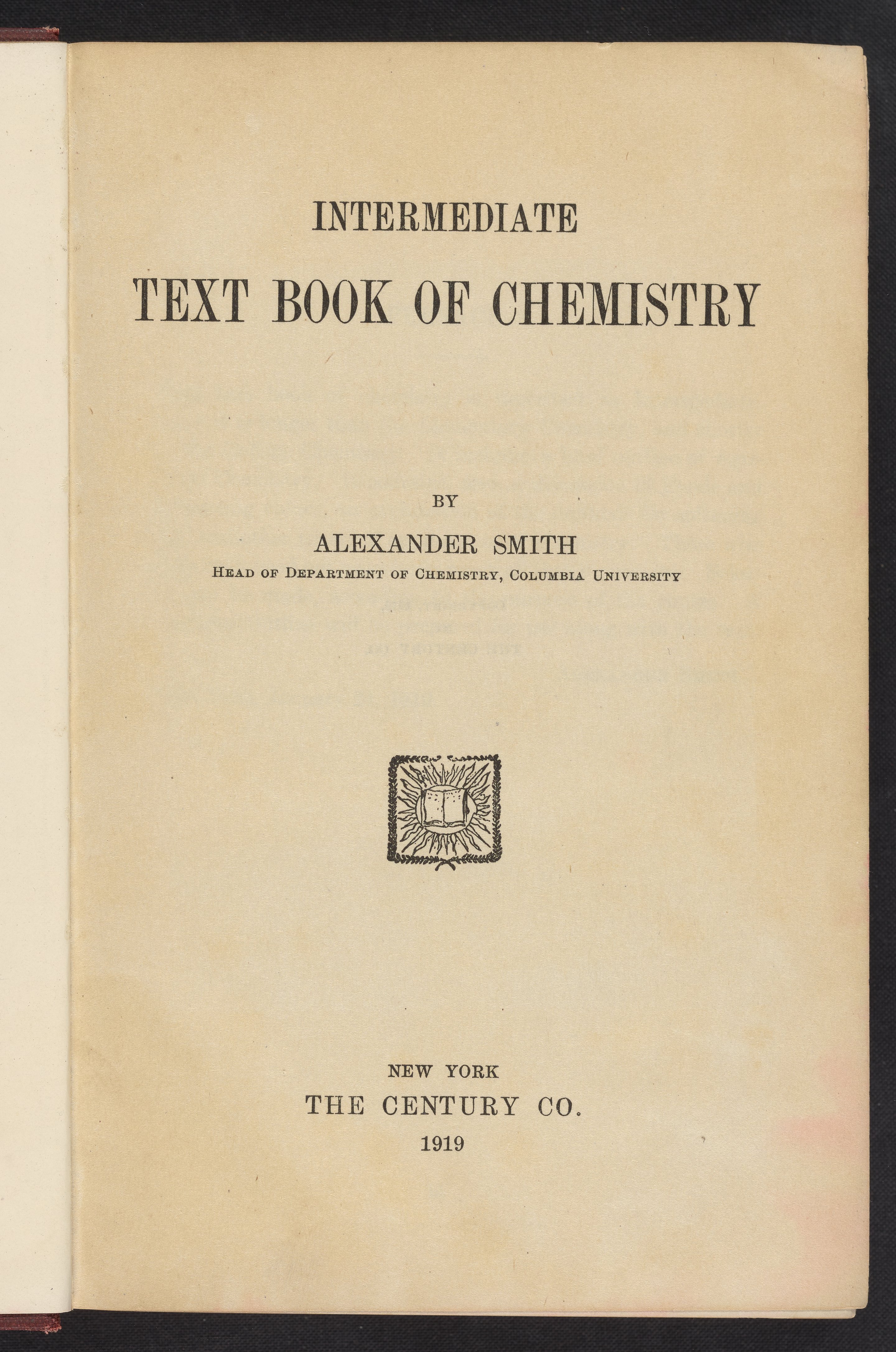Smith, Alexander. “Intermediate Text Book of Chemistry.” New York, New York: The Century Co., 1919. https://digital.sciencehistory.org/works/sx61dn461.