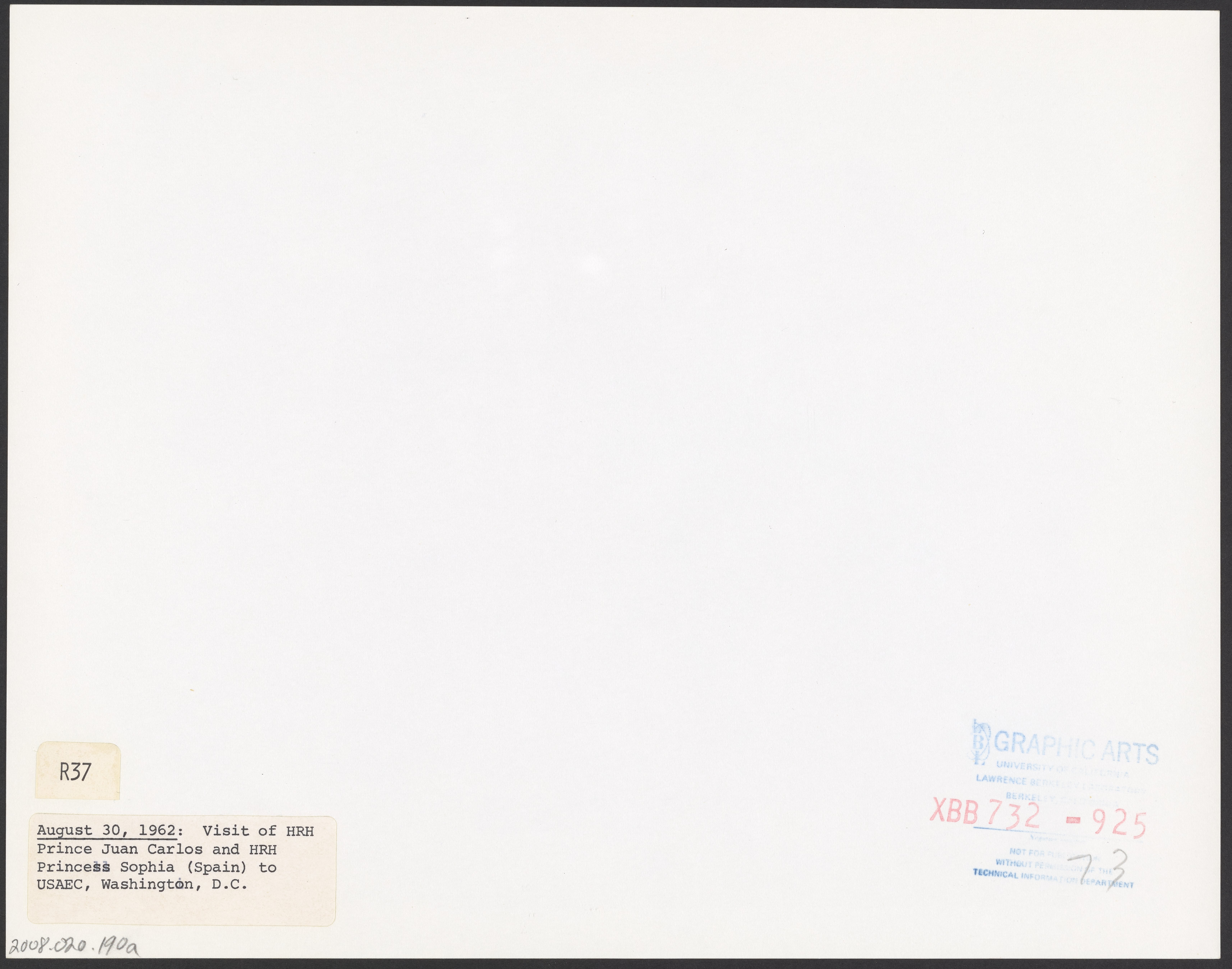 Lawrence Berkeley National Laboratory. Technical and Electronic Information Department. “Spanish Royalty Visit the U.S. Atomic Energy Commission,” August 30, 1962. Records of the Lawrence Berkeley National Laboratory - Nuclear Division, Box 6. Science History Institute. Philadelphia. https://digital.sciencehistory.org/works/szw6l5r.