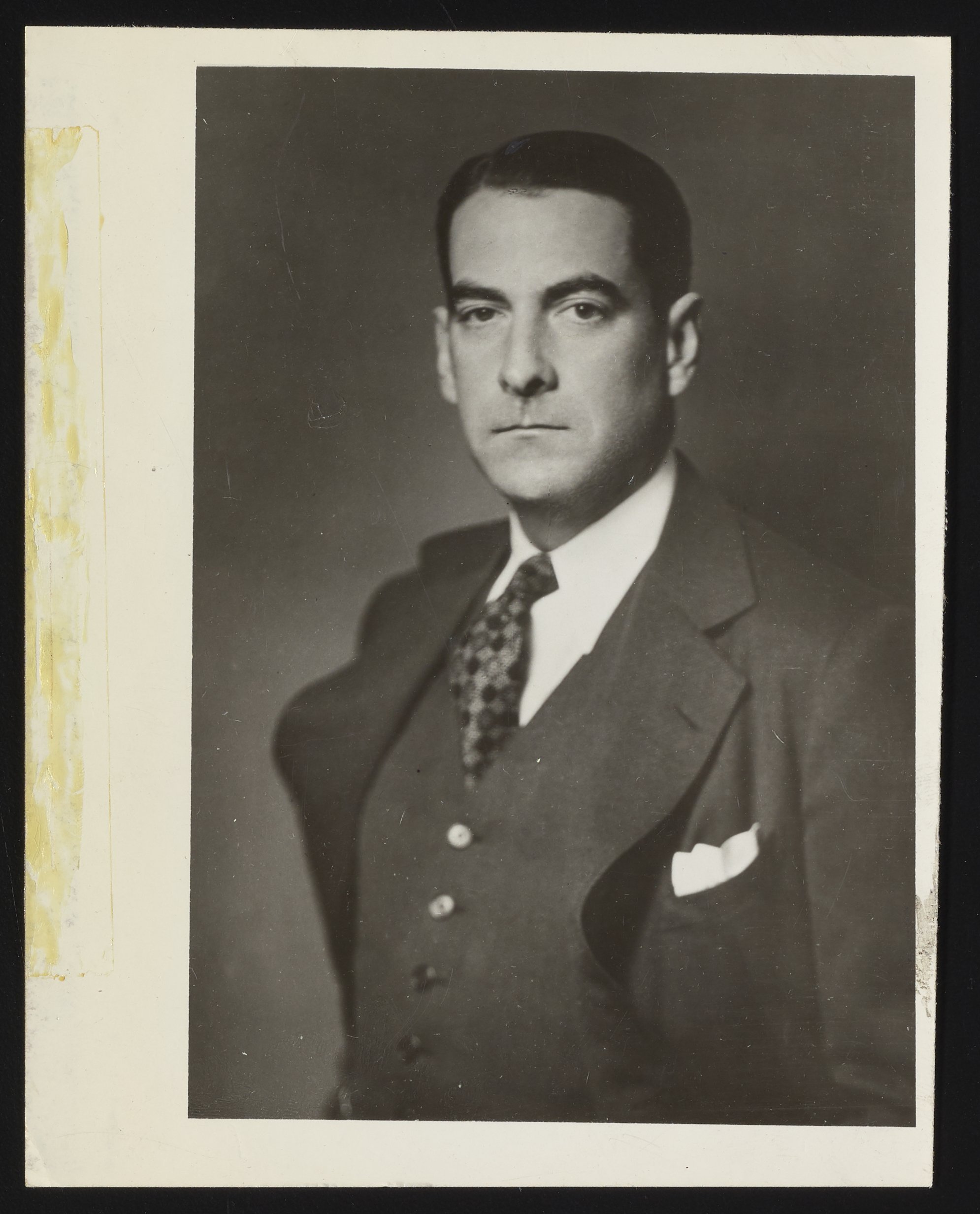 Portrait of Edgar Monsanto Queeny (1897-1968), U.S. industrialist and chairman of Monsanto Chemical Works / Monsanto Chemical Company from 1928 to 1960. The son of Monsanto Chemical Works founder John Francis Queeny, Edgar Monsanto Queeny is credited with navigating the company through the 1929 stock market crisis and for managing its expansion from a small chemical company specializing in commodity food additives like artificial sweeteners to a global agrochemical and agricultural biotechnology corporation.