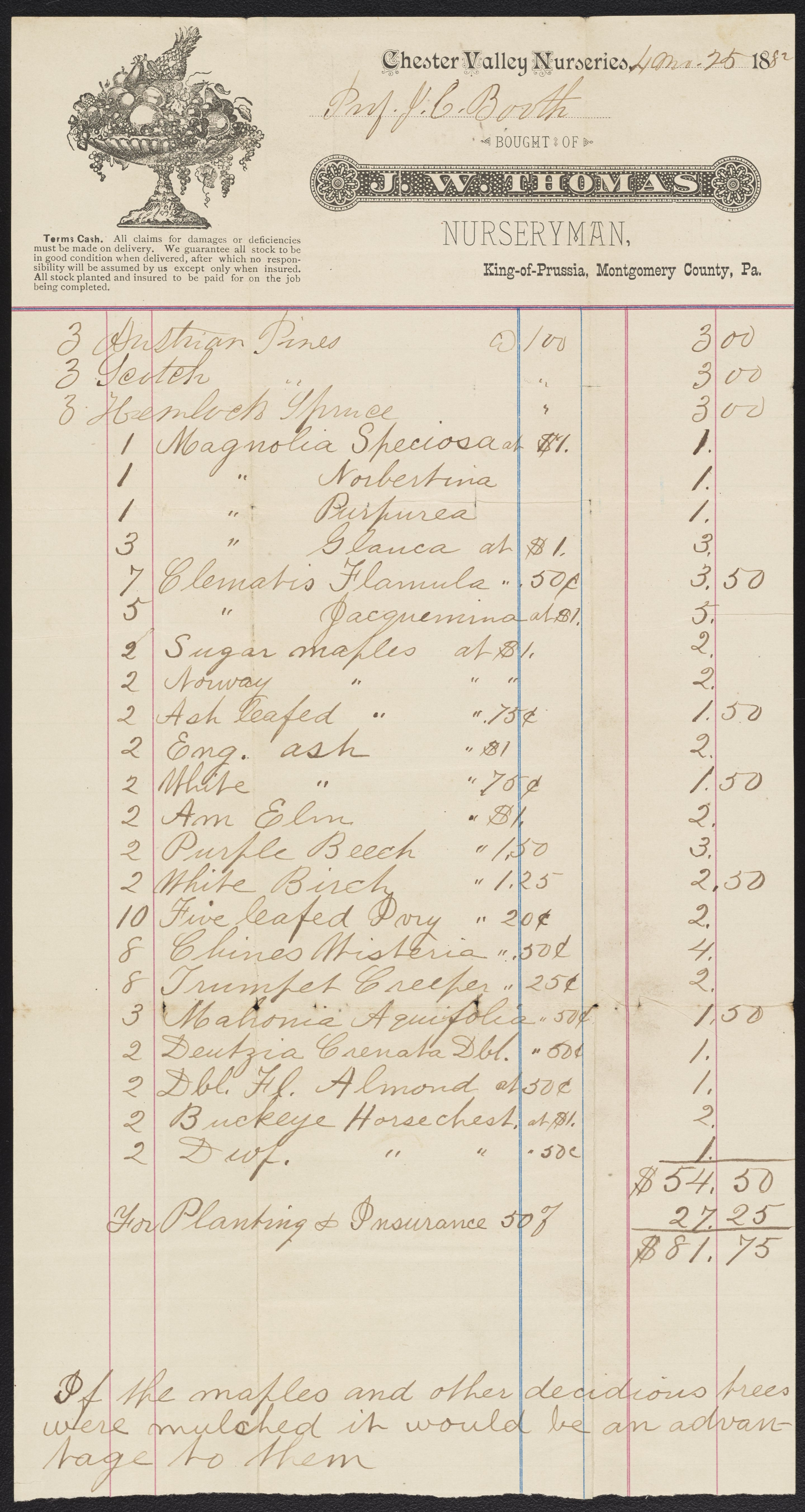 Thomas, Joseph W. “List of Stock Purchased from Joseph W. Thomas,” 1882. Papers of James Curtis Booth, Box 2, Folder 10. Science History Institute. Philadelphia. https://digital.sciencehistory.org/works/t2jb3df.