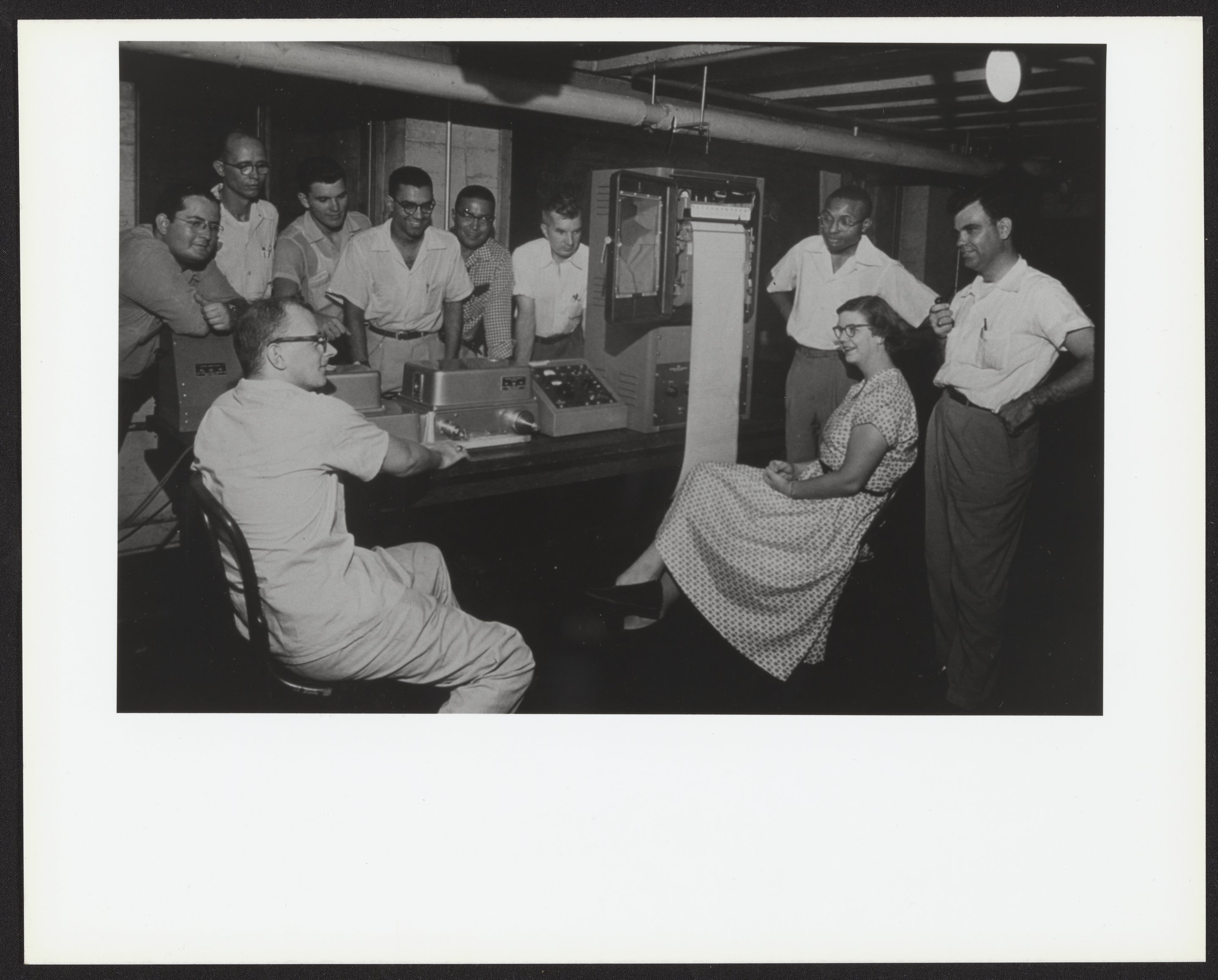 “Group Photograph at the Fisk Infrared Institute, 1954,” 1954. Thomas J. Porro collection of Perkin-Elmer Photographs, Box 1, Folder 18. Science History Institute. Philadelphia. https://digital.sciencehistory.org/works/t5pbcg9.