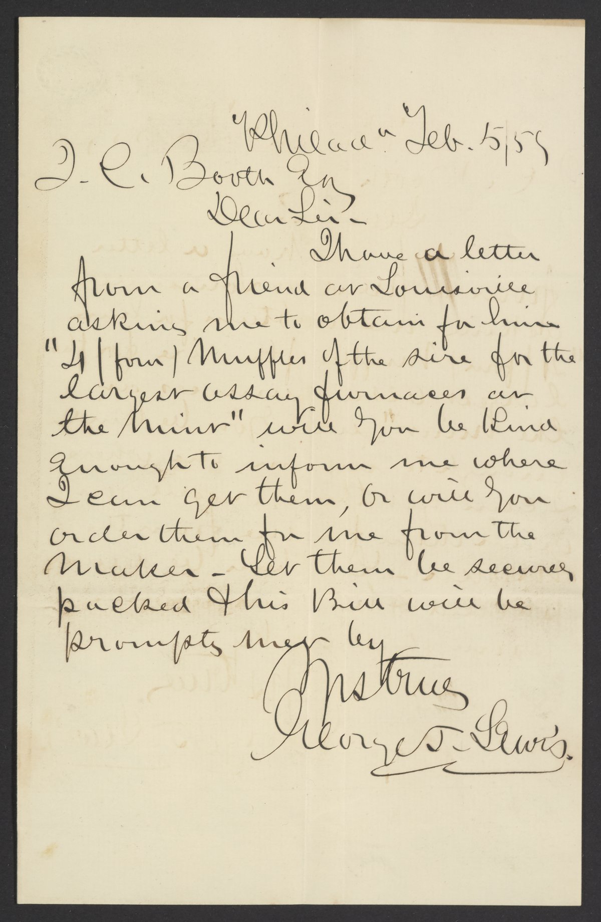 Letter from George T. Lewis to James Curtis Booth, February 5, 1859