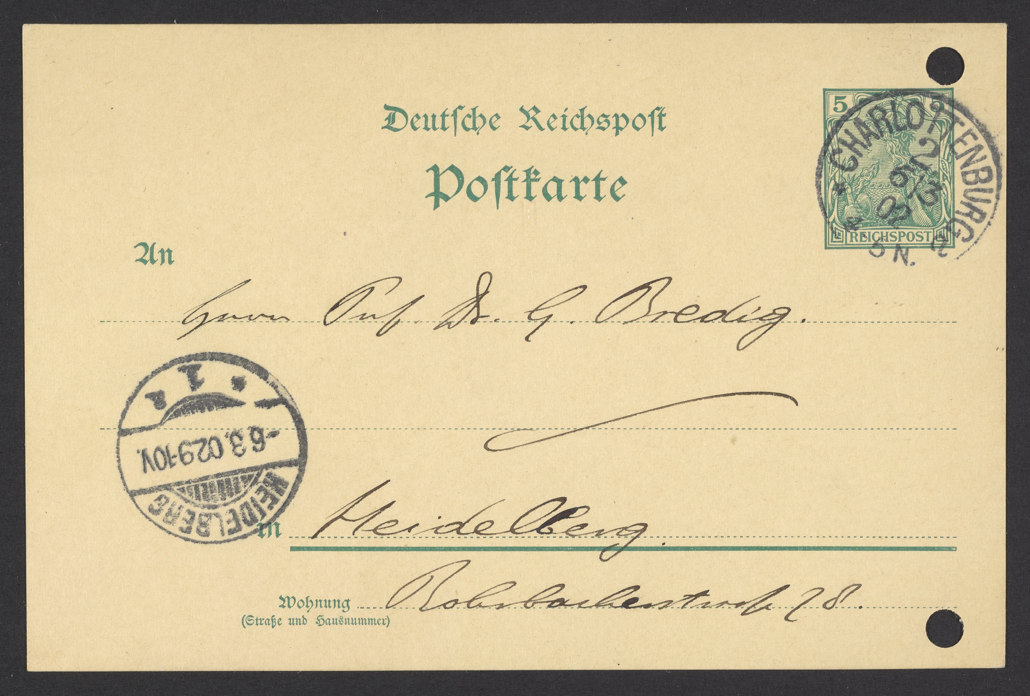 Postcard from Jacobus H. van 't Hoff to Georg Bredig, March 1902