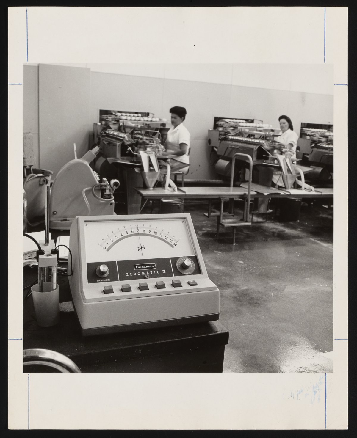 Armstrong & Hess. “Beckman Zeromatic II PH Meter, with Two Workers at Benches in the Background,” circa 1966. Beckman Historical Collection, Box 81. Science History Institute. Philadelphia. https://digital.sciencehistory.org/works/tb09j5775.