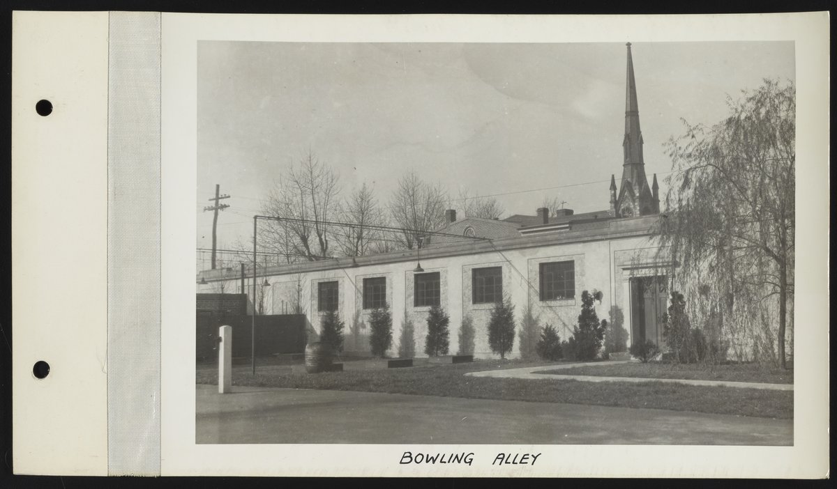 Rohm and Haas Company. “Bowling Alley at Bridesburg Plant.” Exterior Views of Charles Lennig and Company Plant in Bridesburg, 1931. Rohm & Haas Company Archives, Box 27 (Photographs), Folder 8. Science History Institute. Philadelphia. https://digital.sciencehistory.org/works/td96k349d.