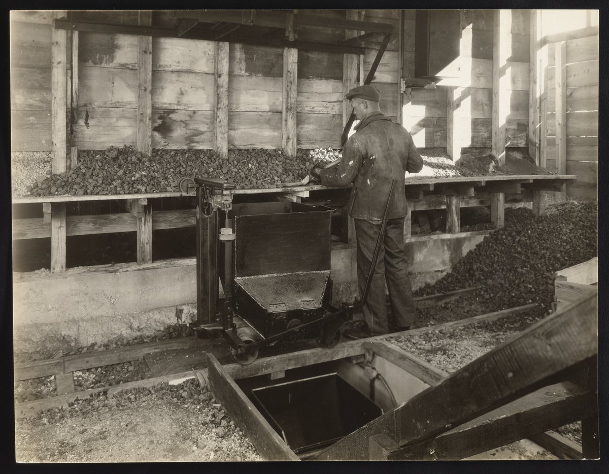 Employee at work in raw material storage at Fixed Nitrogen Research Laboratory plant