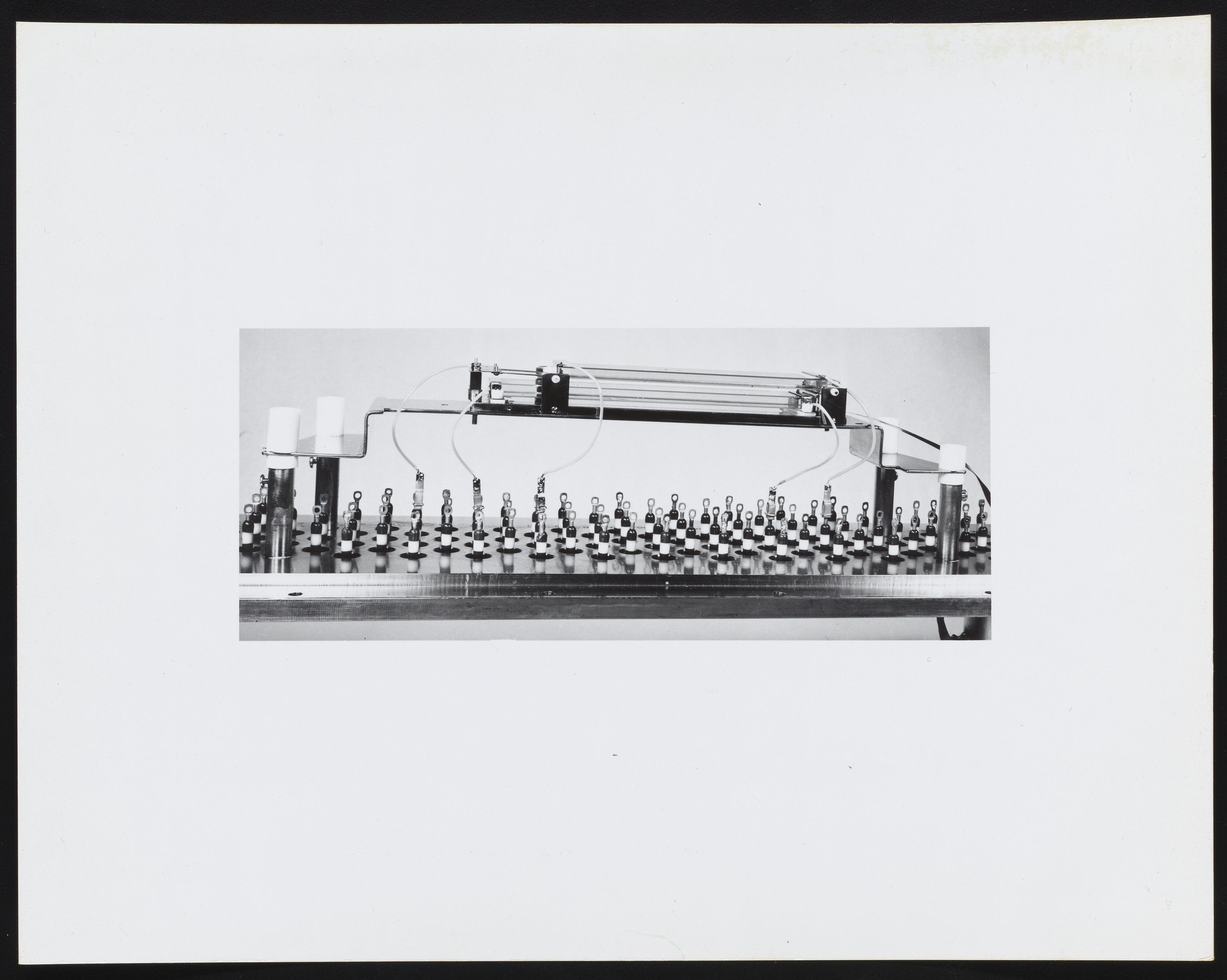 Bendix Corporation. “Ion Source and Model 301 Magnetic Electron Multiplier,” 1958. Photographs from the Bendix Time-of-Flight Mass Spectrometer Collection, Box 3. Science History Institute. Philadelphia. https://digital.sciencehistory.org/works/th83kz93t.