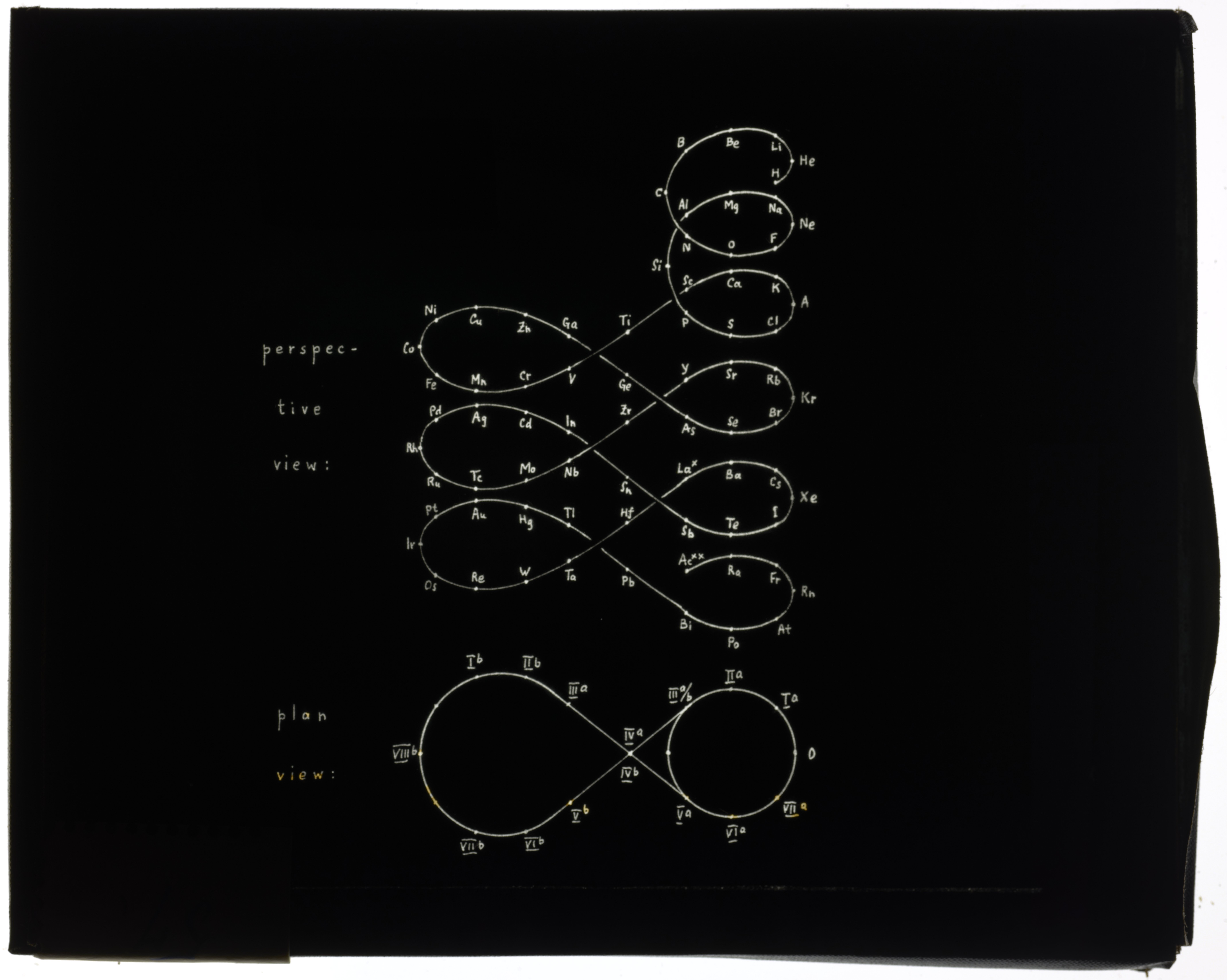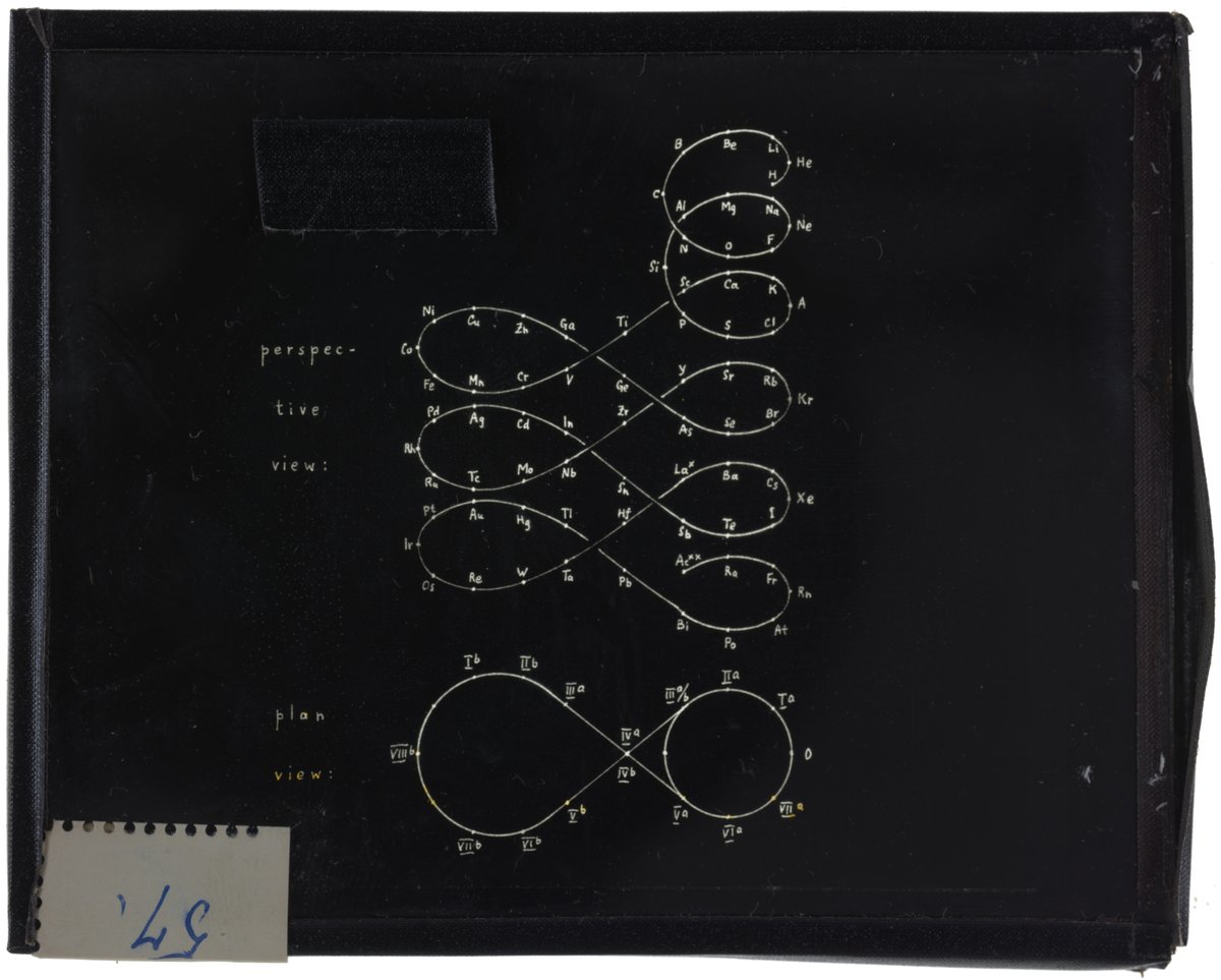 Periodic table in style of helix and space lemniscate with additional loop for rare earth elements1900 (Original design), Circa 1957 (Date attributed to slide)