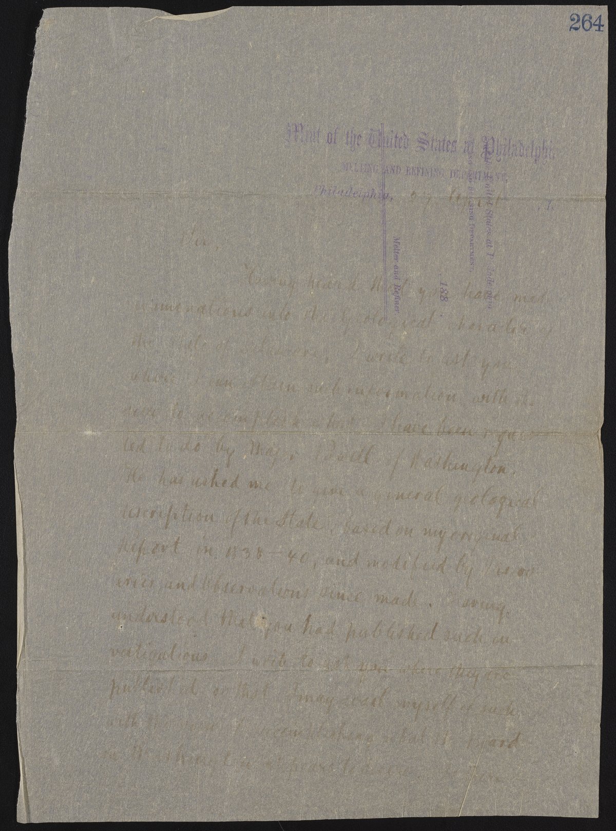 James Curtis Booth (1810-1888) writes to a Professor Wolff in Newark, Delaware to enquire about a geological survey of Delaware.