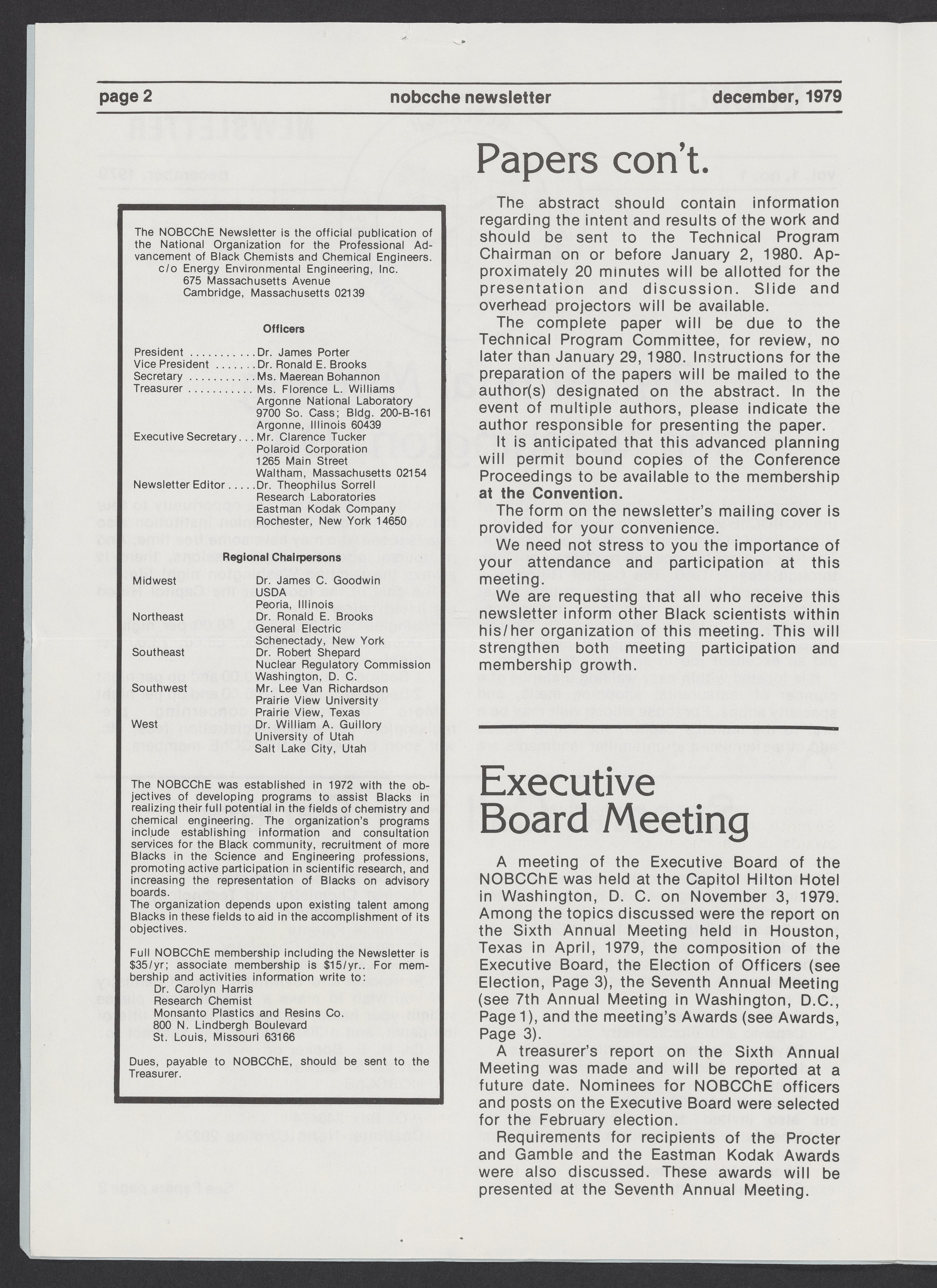 Small JPG1200 x 1702px — 214 KBLarge JPG2880 x 4085px — 1.6 MBFull-sized JPG4428 x 6281px — 3.9 MBOriginal fileTIFF — 4428 x 6281px — 79.6 MBThe inaugural issue of the National Organization for the Professional Advancement of Black Chemists and Chemical Engineers (NOBCChE) Newsletter, published December 1979.