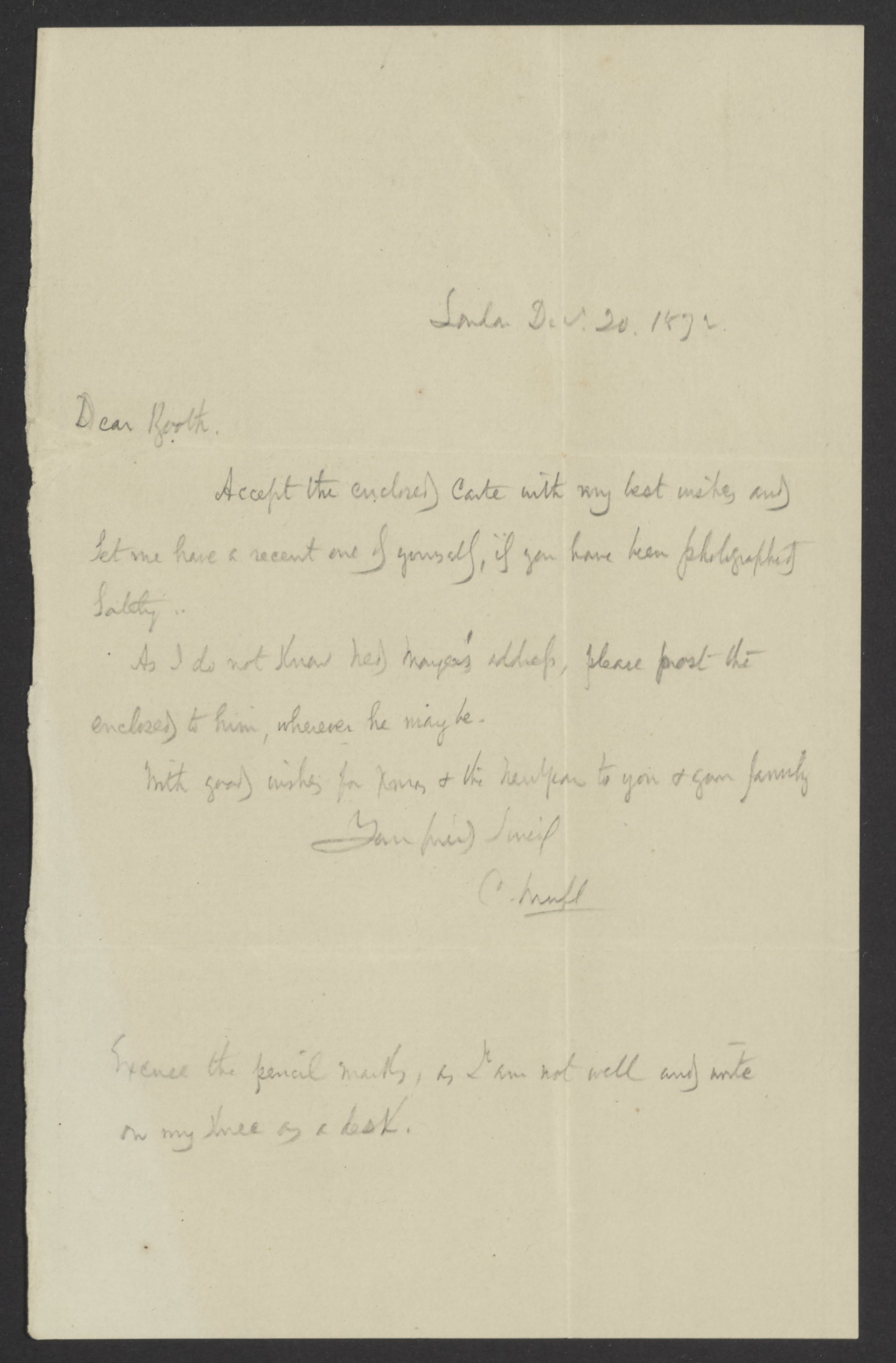 Letter from Campbell Morfit to James Curtis Booth, December 20, 1872