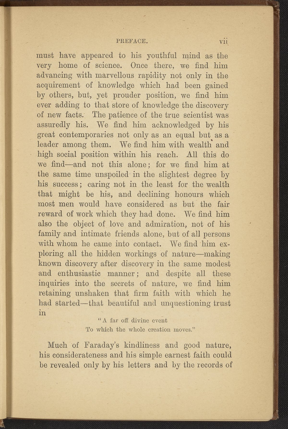 Small JPG1200 x 1725px — 560 KBFull-sized JPG2145 x 3084px — 1.5 MBOriginal fileTIFF — 2145 x 3084px — 19.0 MBA biographical account of the life and accomplishments of Michael Faraday (1791-1867), an English scientist who contributed to the study of electromagnetism and electrochemistry. Digitized content includes the work's front matter and a selection of plates. Plates include a portrait of Faraday, Faraday's Royal Institution of Great Britain laboratory, Faraday's study, Faraday delivering his annual Christmas Juvenile lectures, and Faraday lecturing before the prince consort, the Prince of Wales and Duke of Edinburgh.