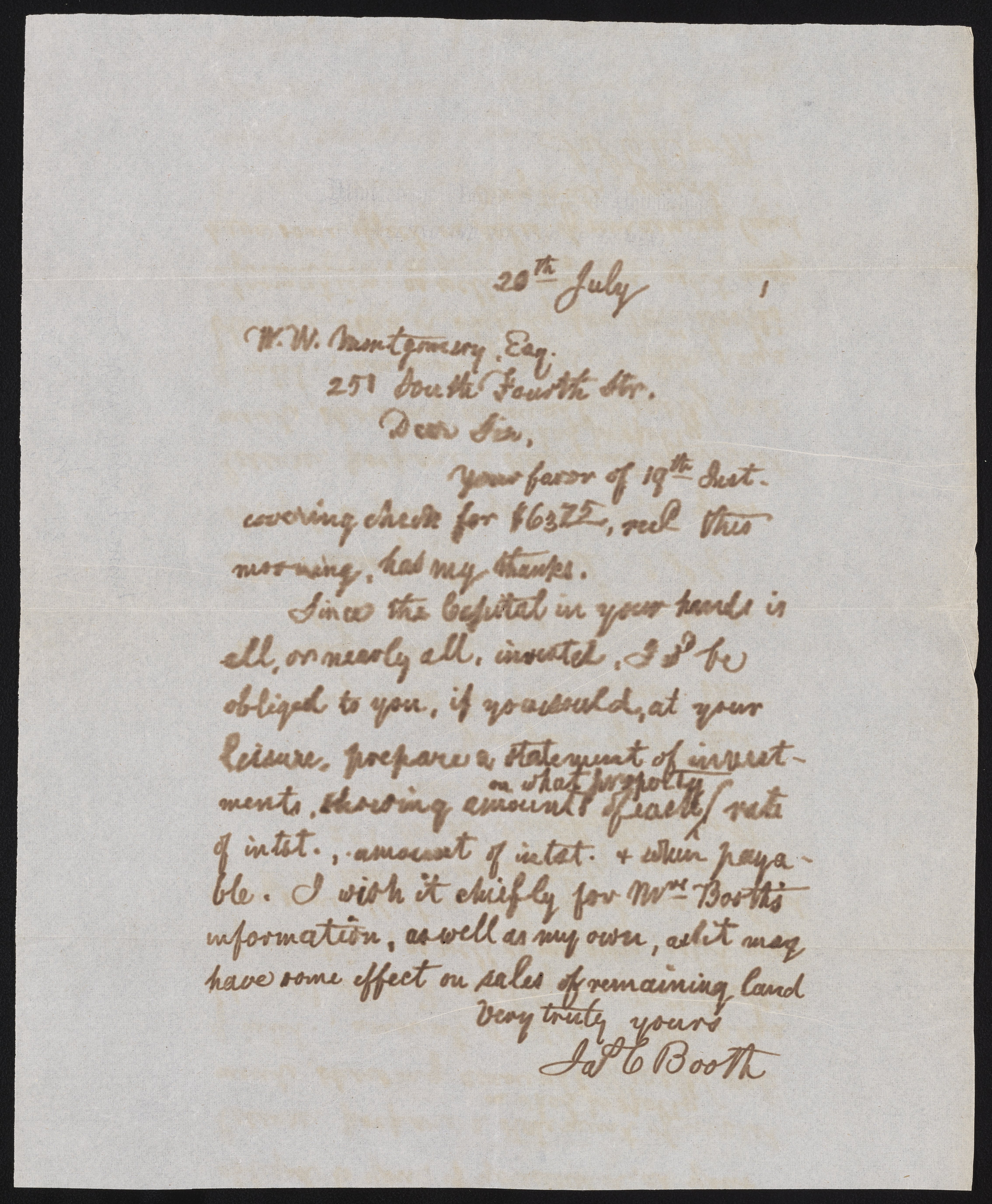 Letter from James Curtis Booth to W. W. Montgomery, July 20, 1880