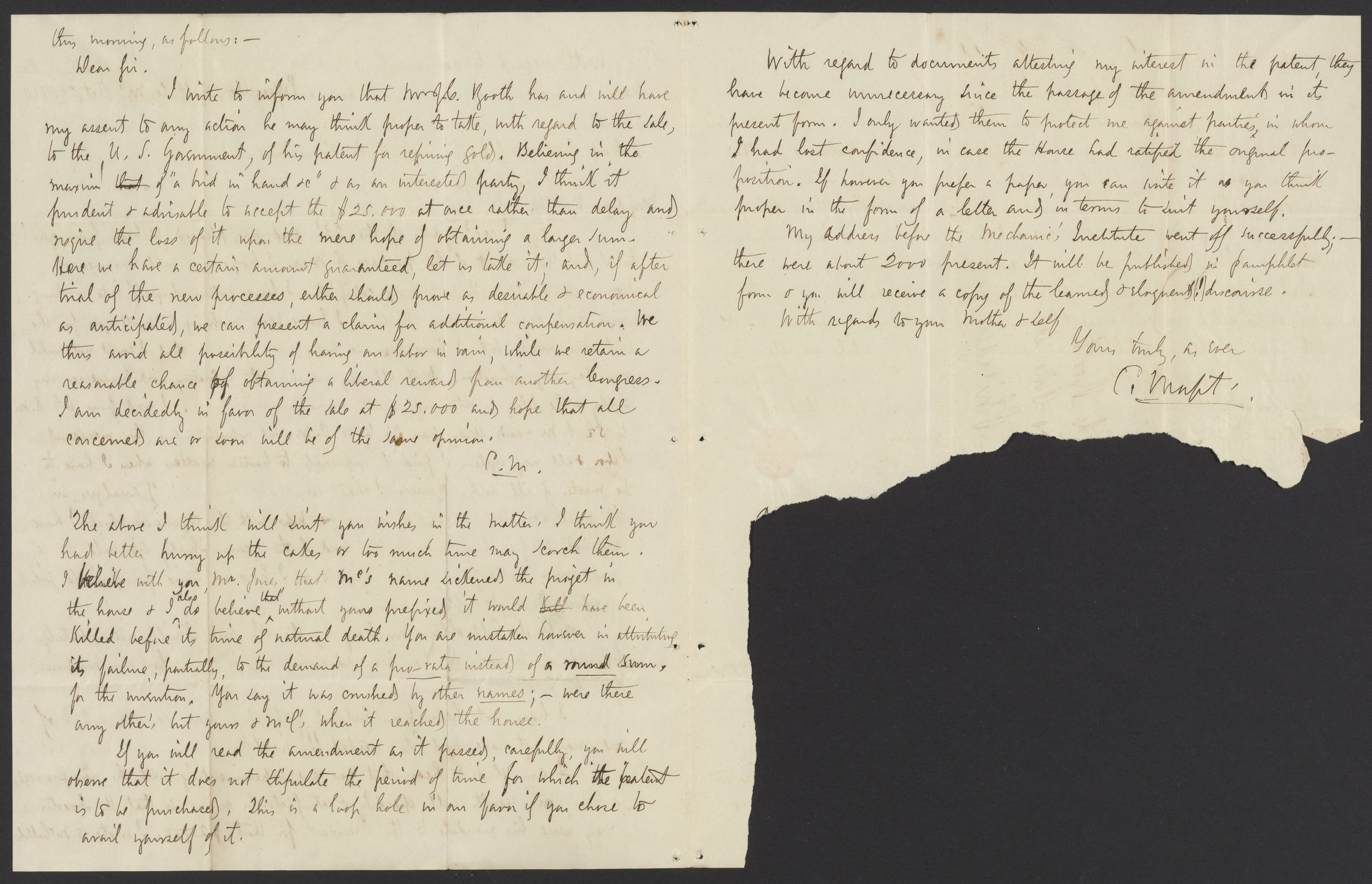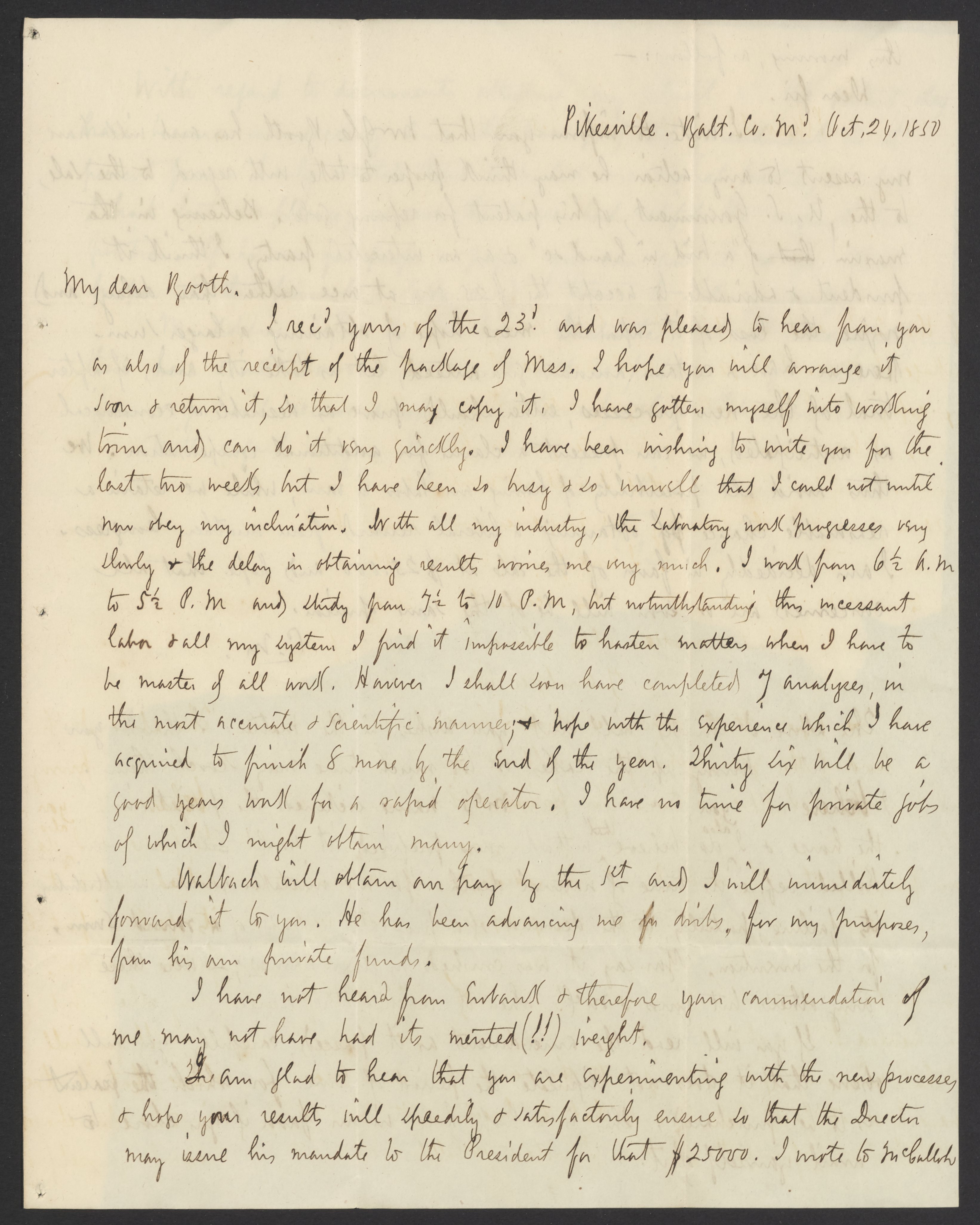 Letter from Campbell Morfit to James Curtis Booth, October 24, 1850