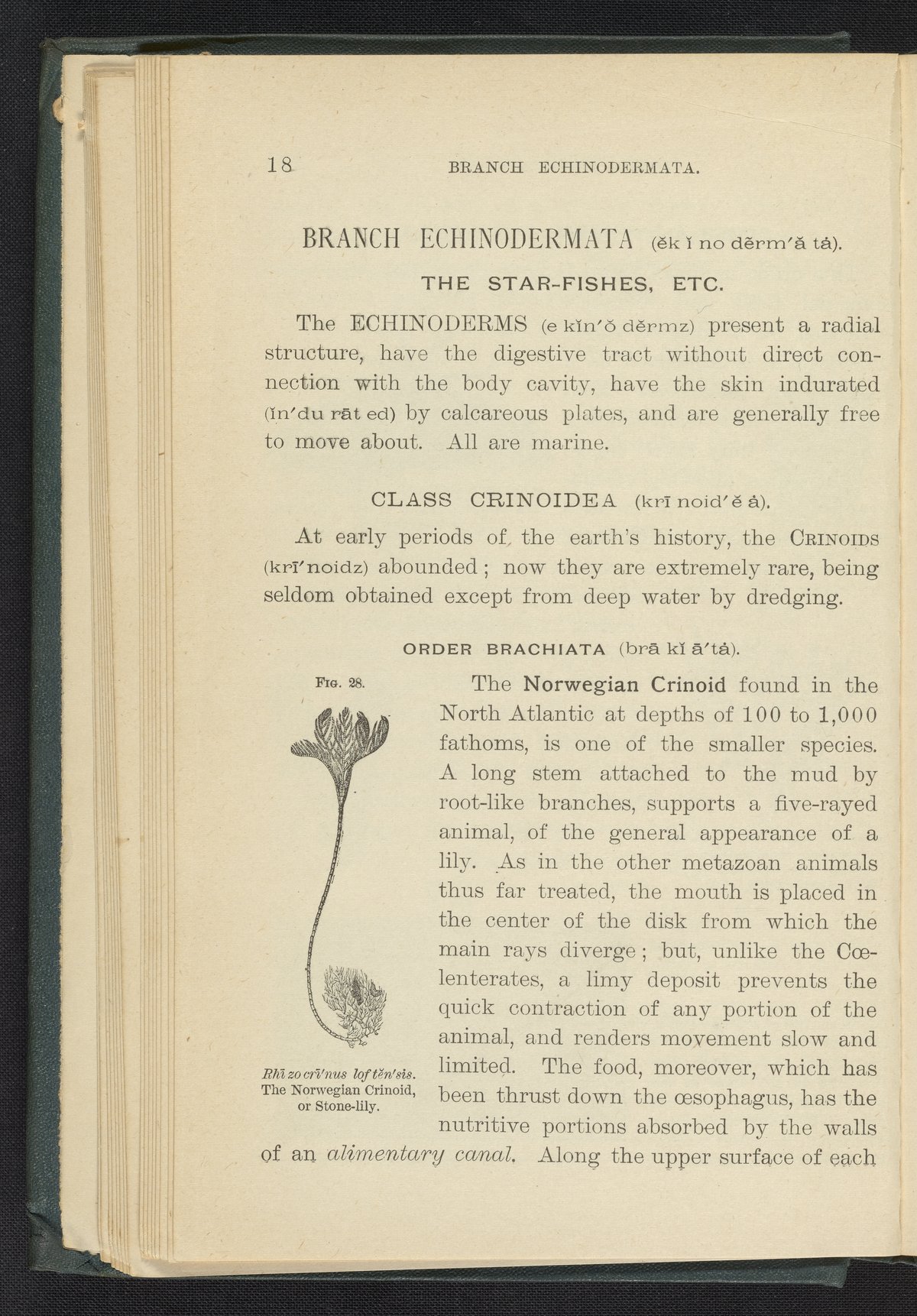 Figure 28 of the 1887 volume Popular Zoology depicting a Norwegian crinoid, also known as a stone-lily.