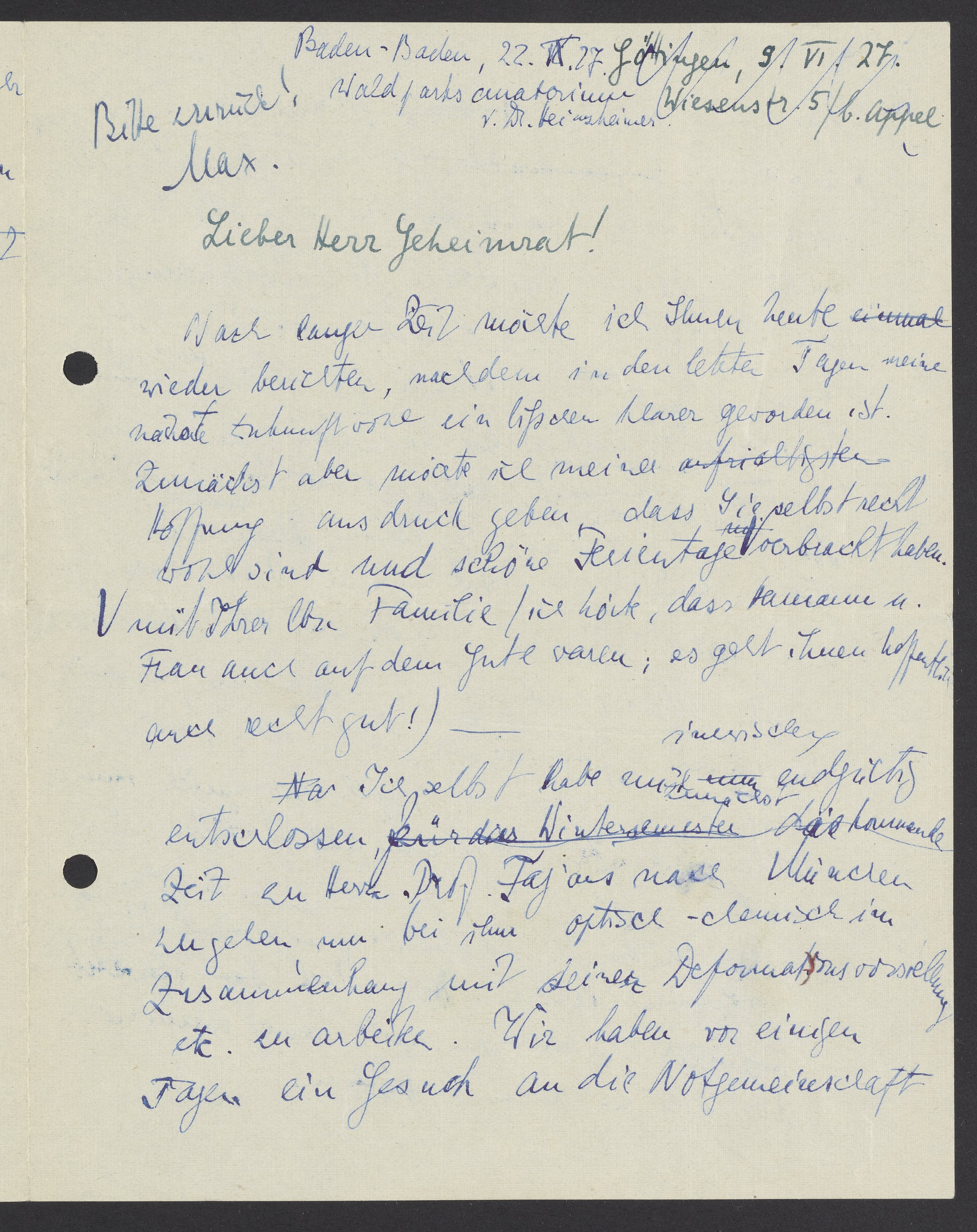 Bredig, Max Albert. “Letter Draft from Max Bredig to Fritz Haber, June 1927,” June 9, 1927. Papers of Georg and Max Bredig, Box 7, Folder 16. Science History Institute. Philadelphia. https://digital.sciencehistory.org/works/tt1x22t.