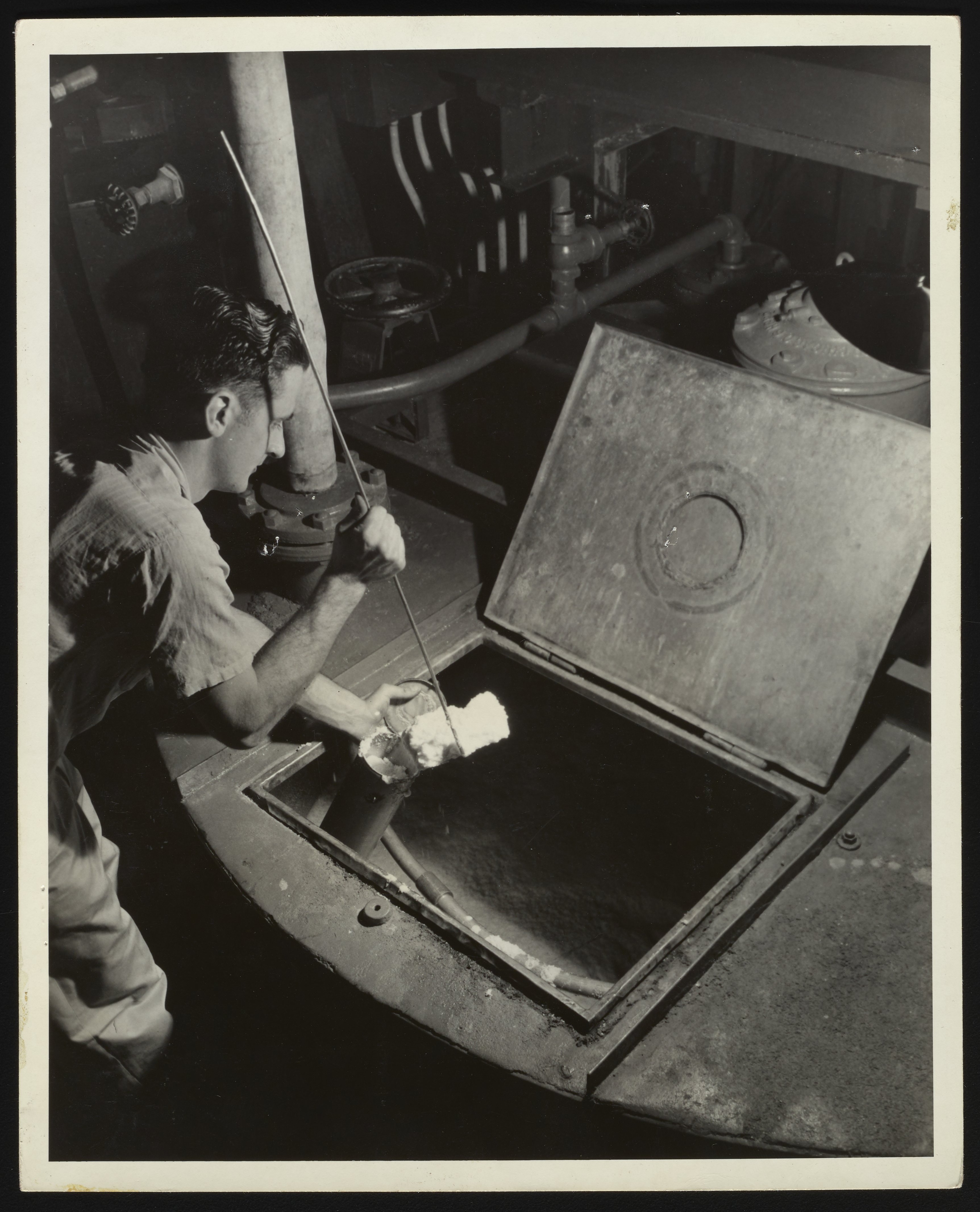 Employee working with ethyl cellulose at Hercules Hopewell plant