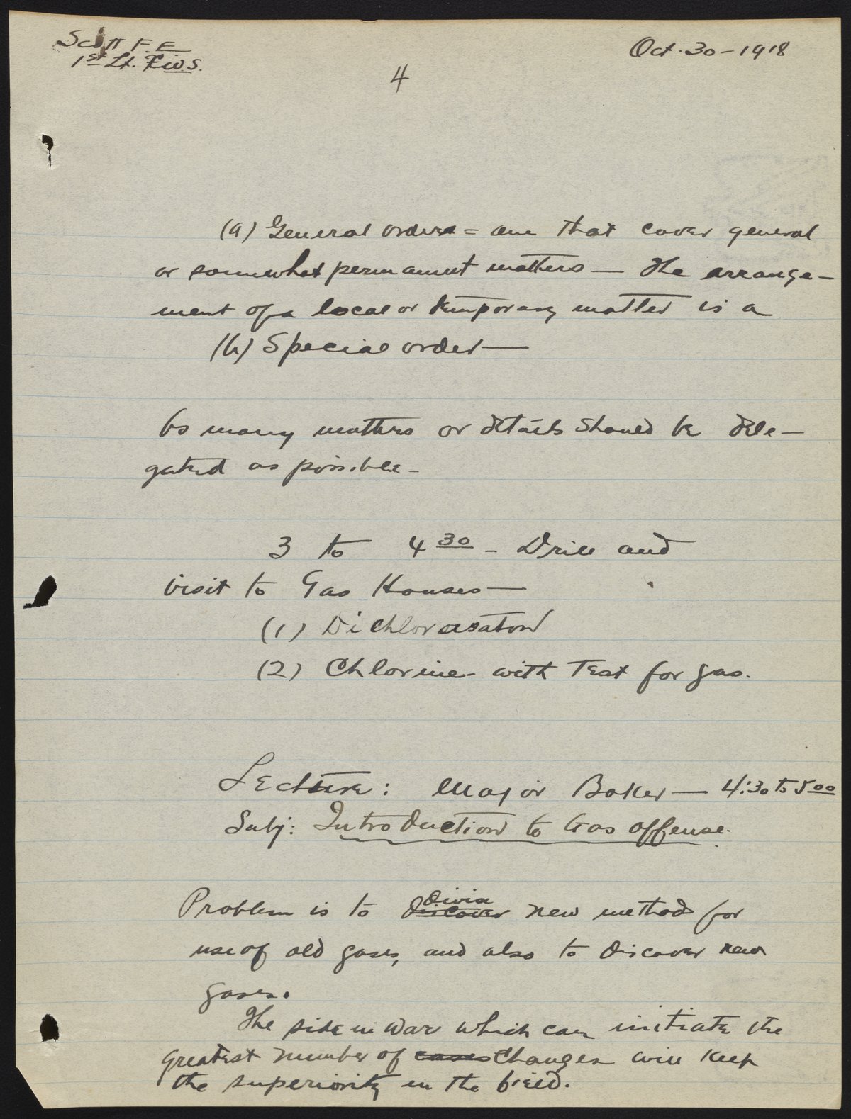 Scott, Francis E. “United States Army Gas School Course Notes,” 1918. Household and Organic Chemistry Course Notebooks. Science History Institute. Philadelphia. https://digital.sciencehistory.org/works/tx31qj045.