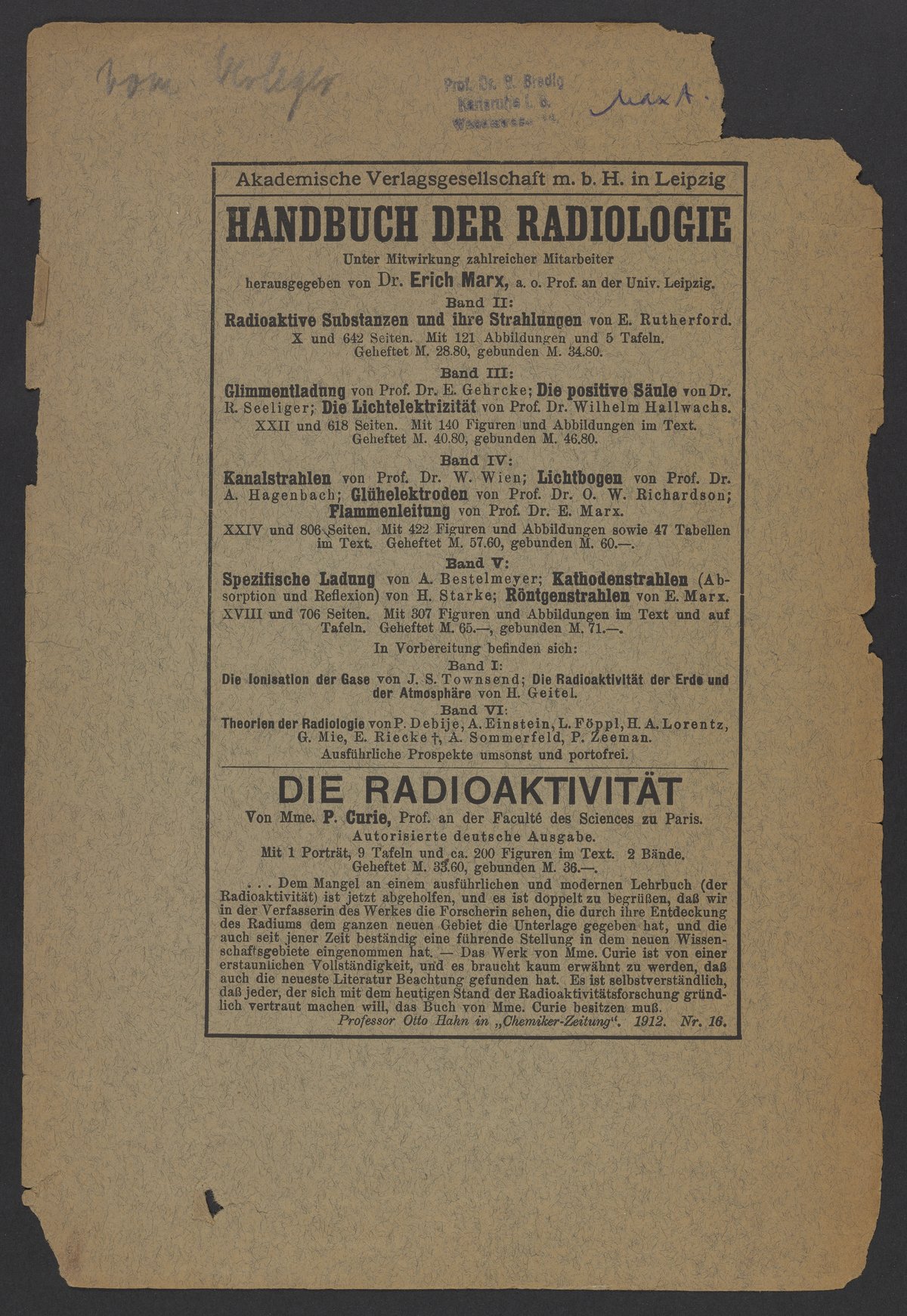 Ostwald, Wilhelm. “Cover of Die Chemische Literatur Und Die Organisation Der Wissenschaft,” 1919. Papers of Georg and Max Bredig, Box 4, Folder 30. Science History Institute. Philadelphia. https://digital.sciencehistory.org/works/u3hysy7.