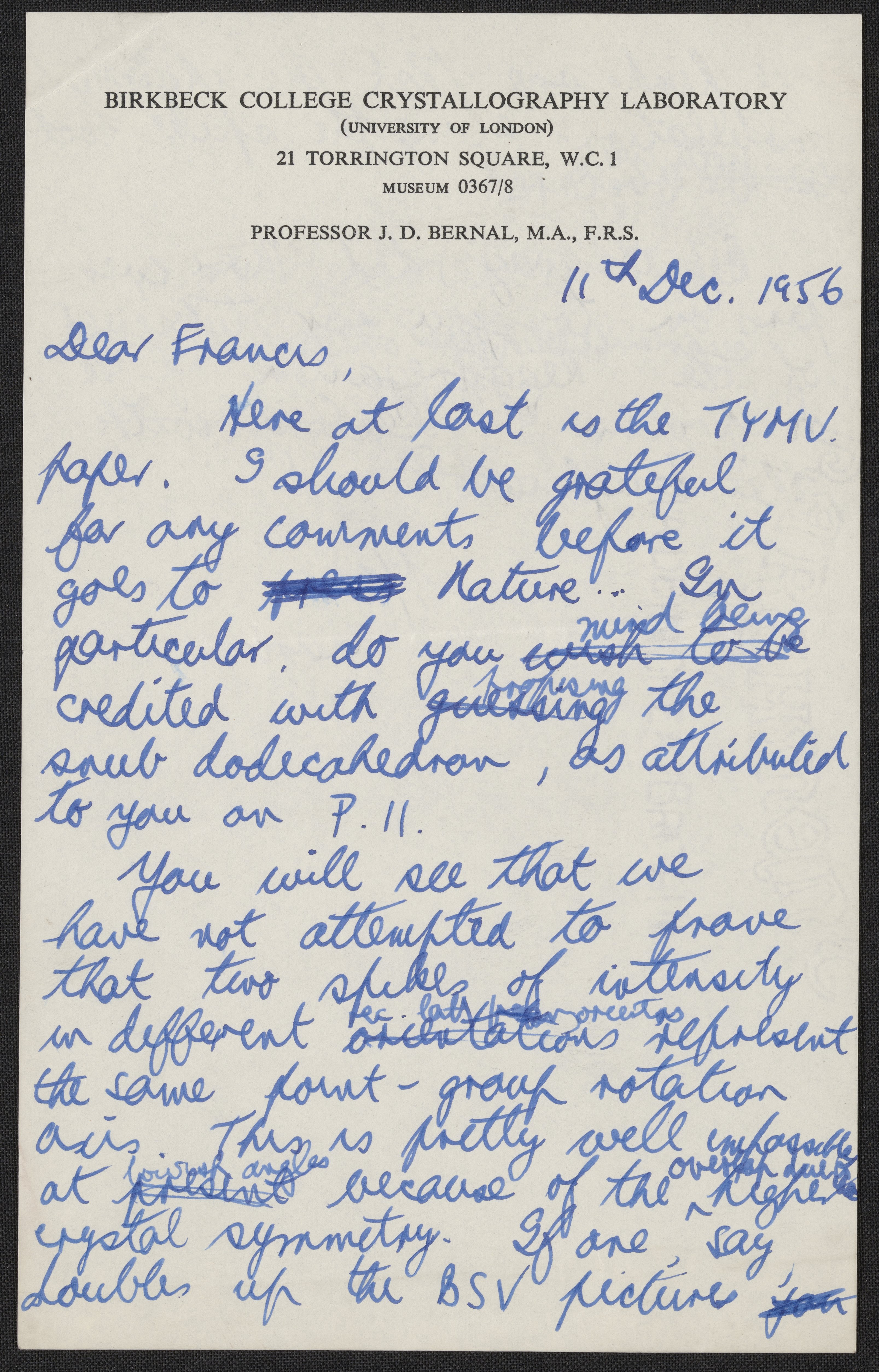 Letter from Aaron Klug to Francis Crick, December 11, 1956