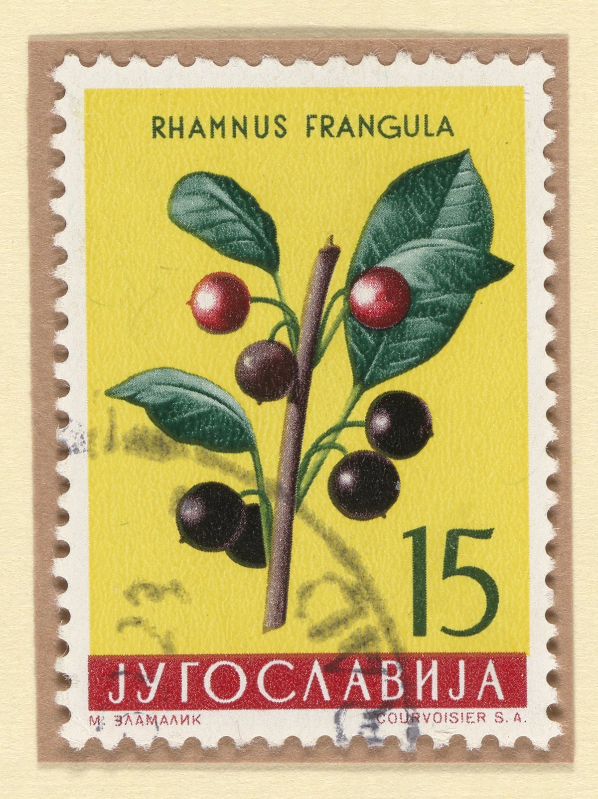 Alder Buckthorn (Rhamnus frangula) postage stamp, Yugoslavia