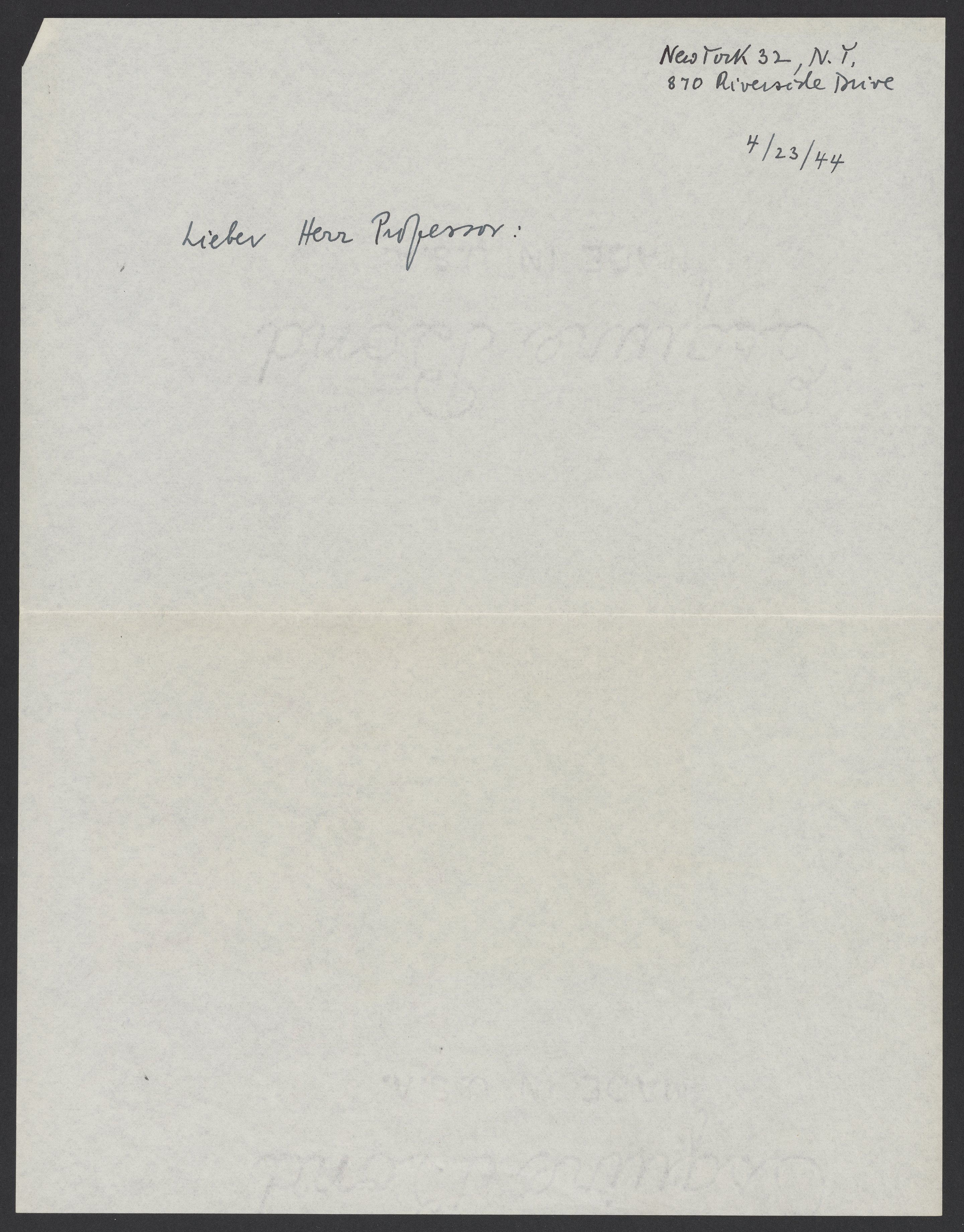 Letter from Max Bredig to Kasimir Fajans, April 23, 1944