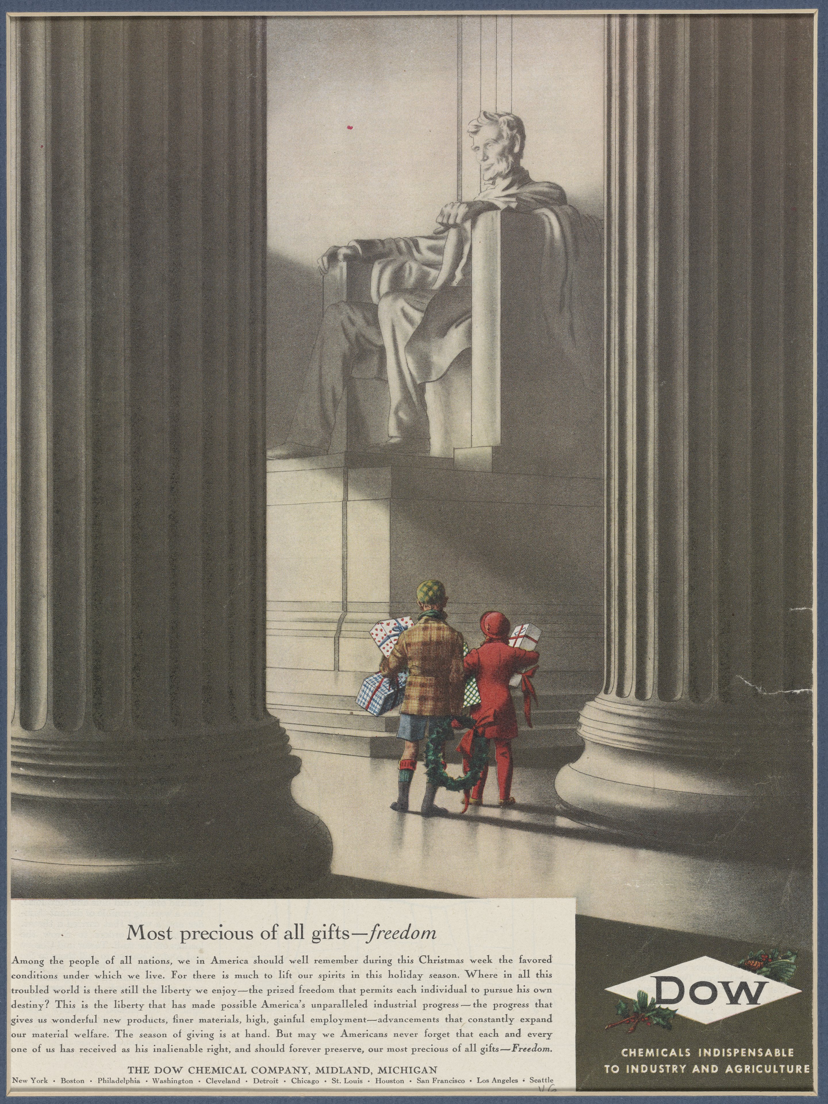 Dow Chemical Company. “Most Precious of All Gifts...Freedom,” 1946. Advertisements from the Dow Chemical Historical Collection, Box 4. Science History Institute. Philadelphia. https://digital.sciencehistory.org/works/uql8m1i.