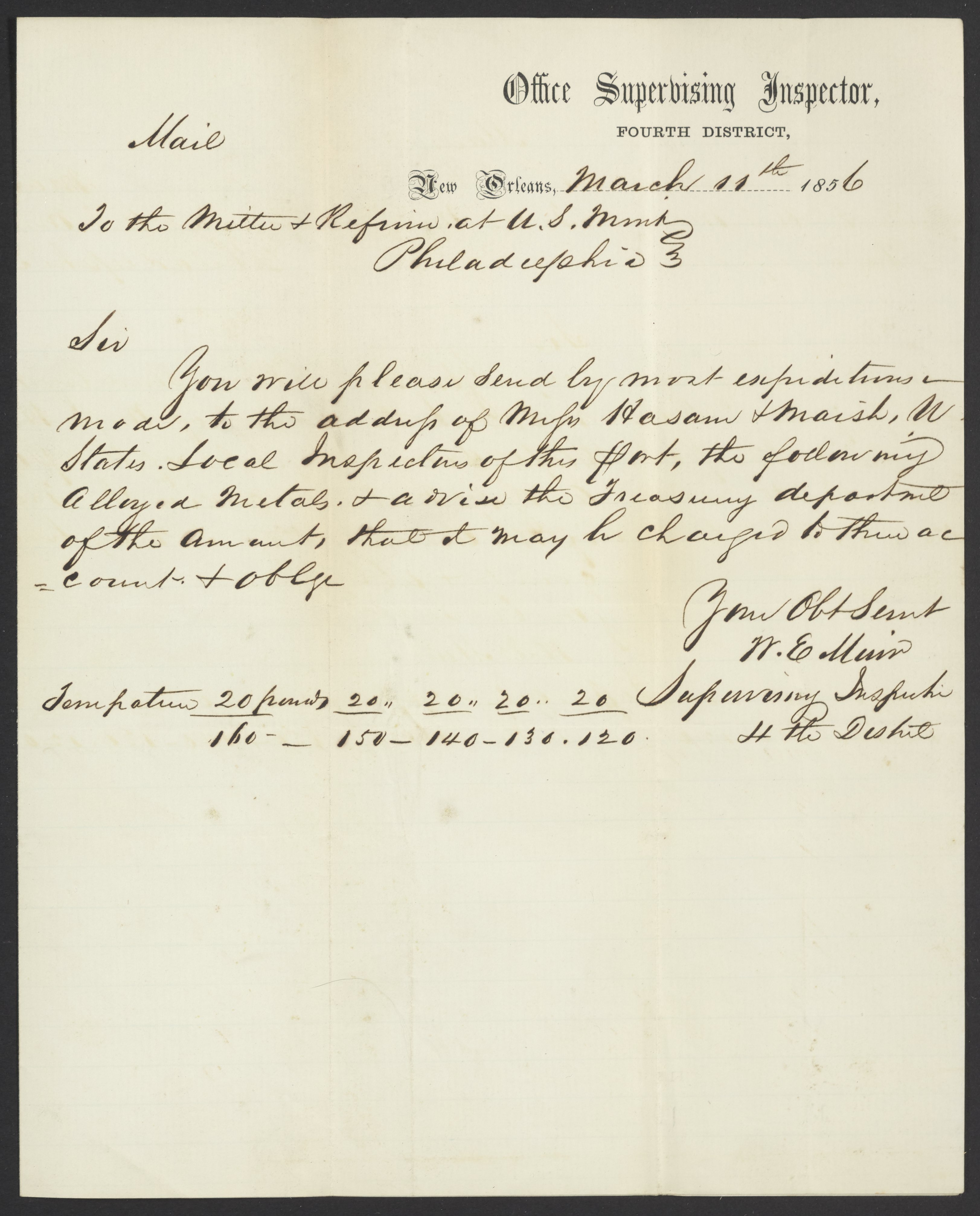Letter from W. E. Muir to James Curtis Booth, March 11, 1856