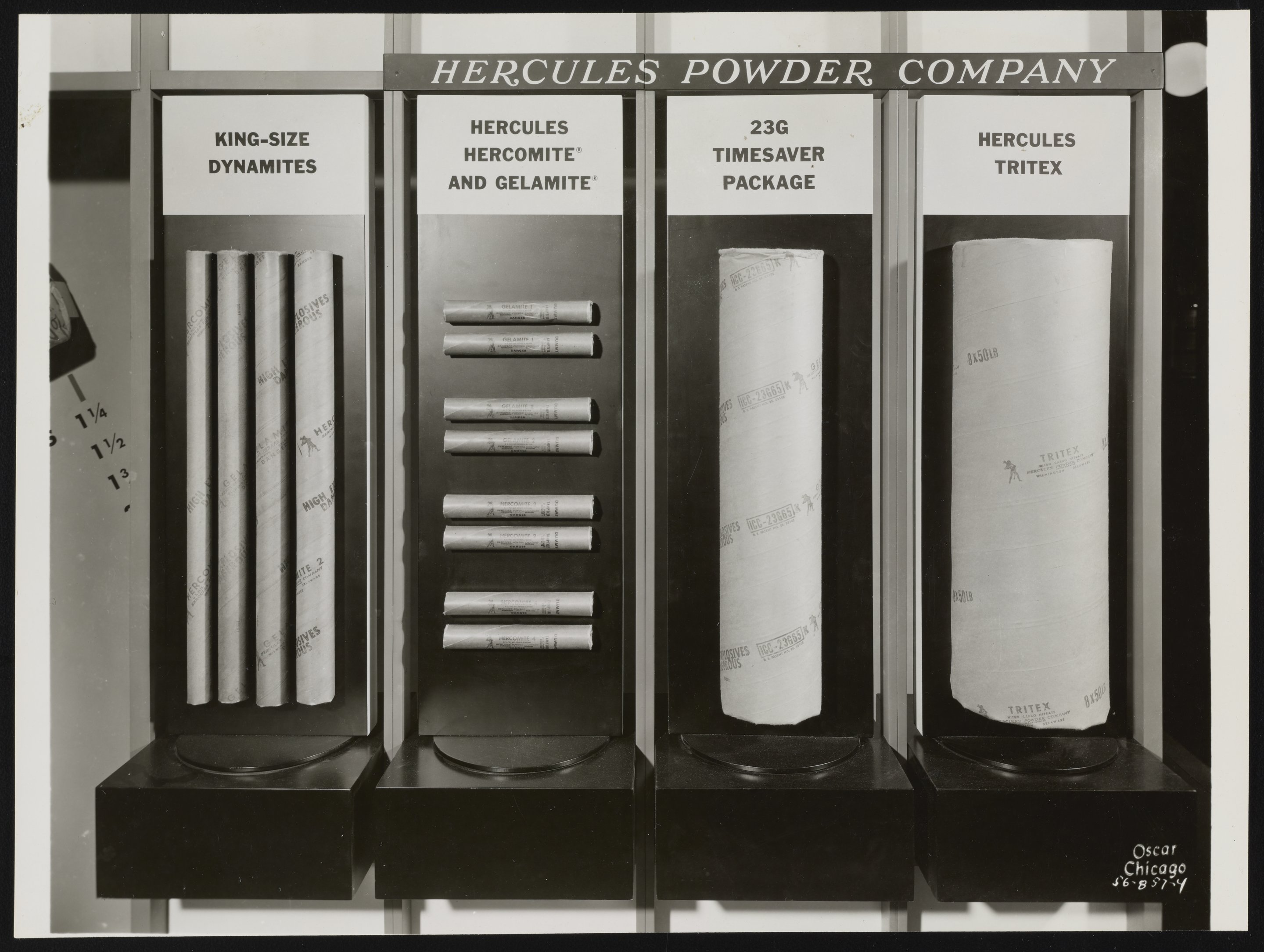 Small JPG1200 x 958px — 172 KBLarge JPG2880 x 2299px — 736 KBFull-sized JPG6152 x 4911px — 2.5 MBOriginal fileTIFF — 6152 x 4911px — 86.5 MBSeries of photographs depicting different panels of the Hercules Powder Company display at the 1956 National Crushed Stone Association trade show held at the Conrad Hilton Hotel in Chicago.