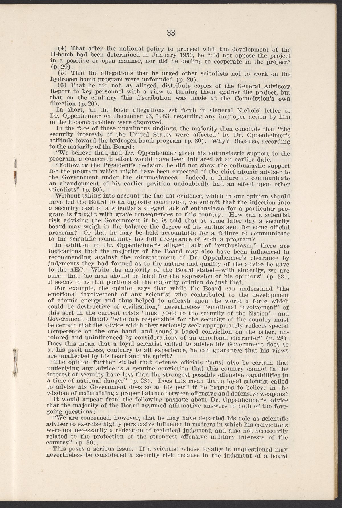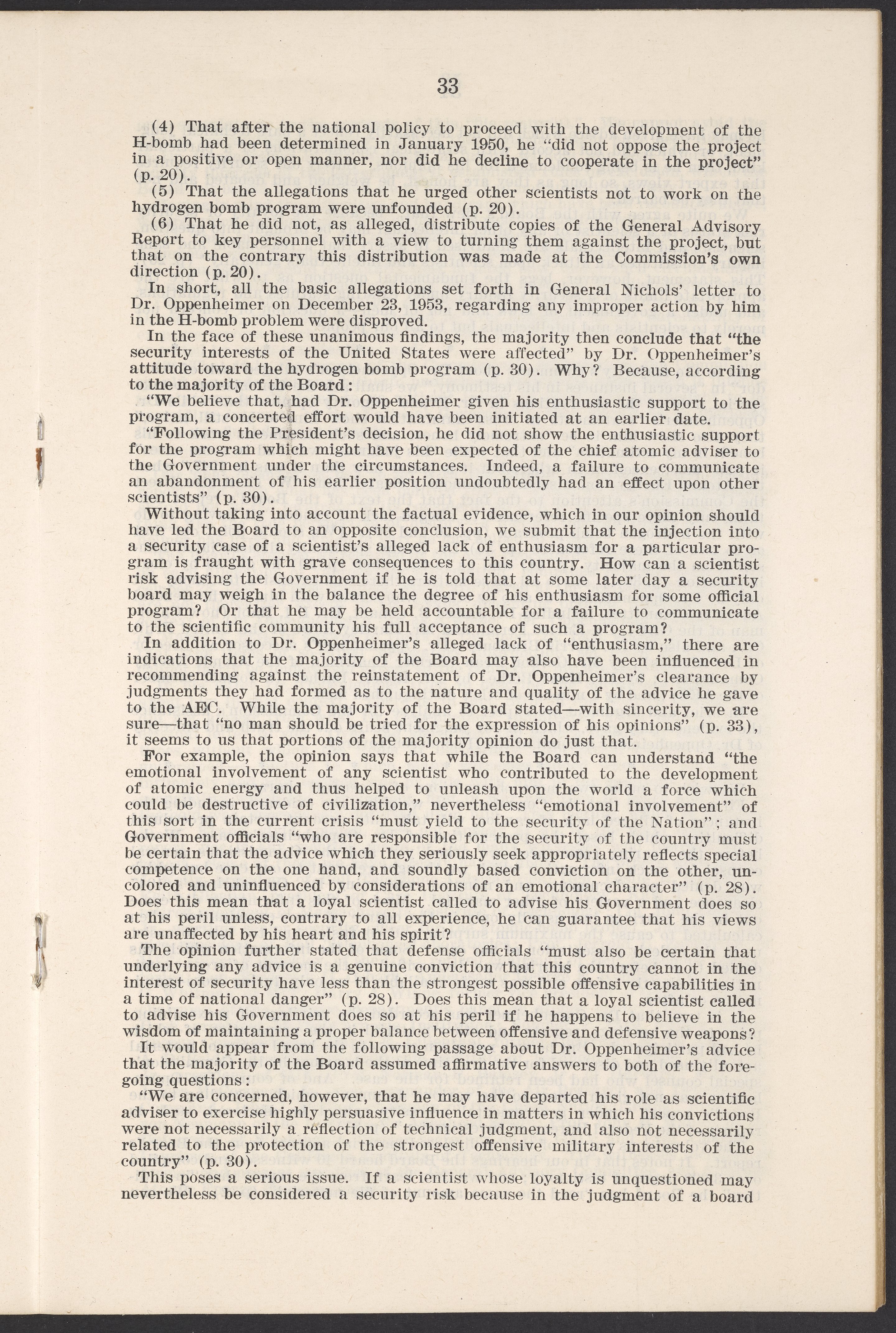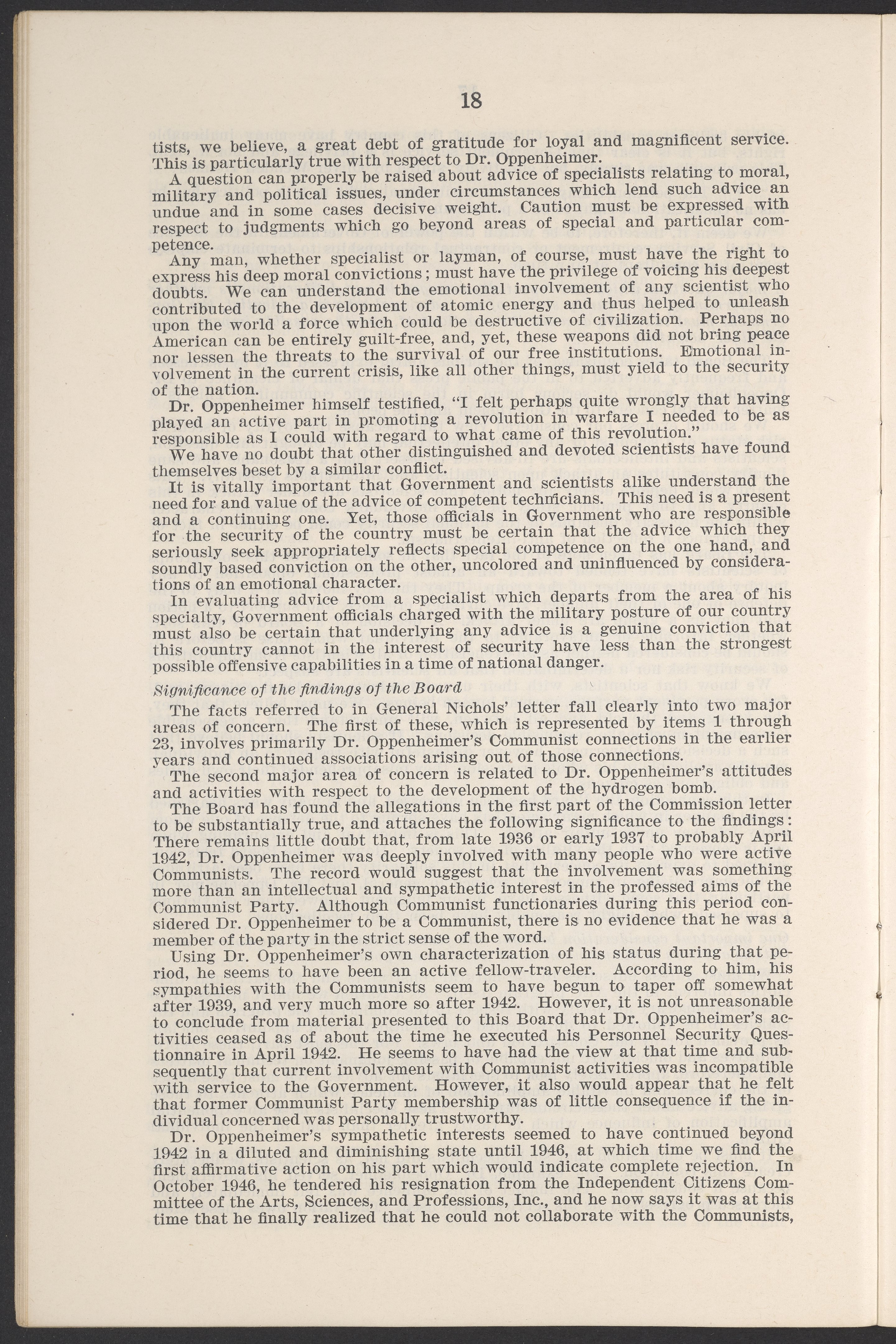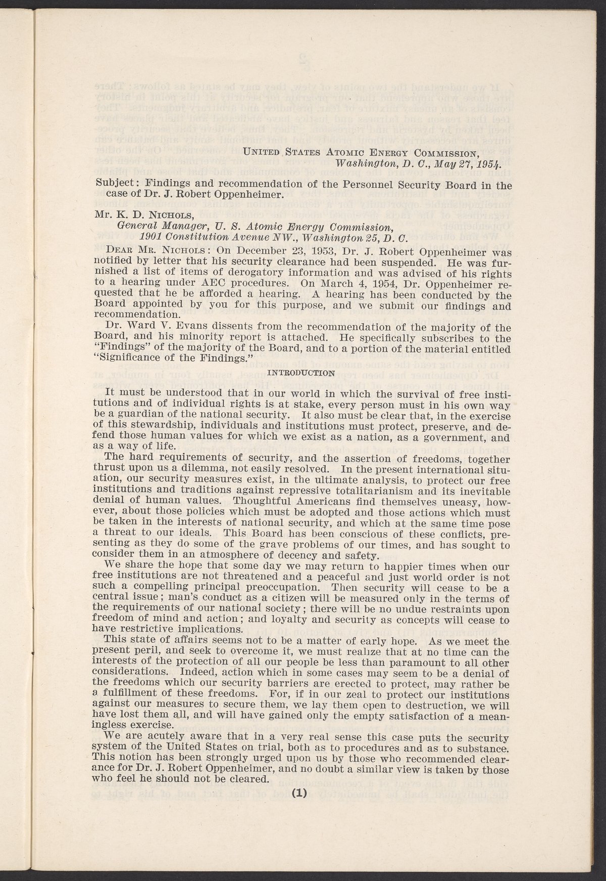 U.S. Atomic Energy Commission. “In the Matter of J. Robert Oppenheimer: Texts of Principal Documents and Letters of Personnel Security Board General Manager Commissioners.” Washington (D.C.): United States. Government Printing Office, 1954. Papers of Max Bredig, Box 8, Folder 42. Science History Institute. Philadelphia. https://digital.sciencehistory.org/works/uxuymyg.