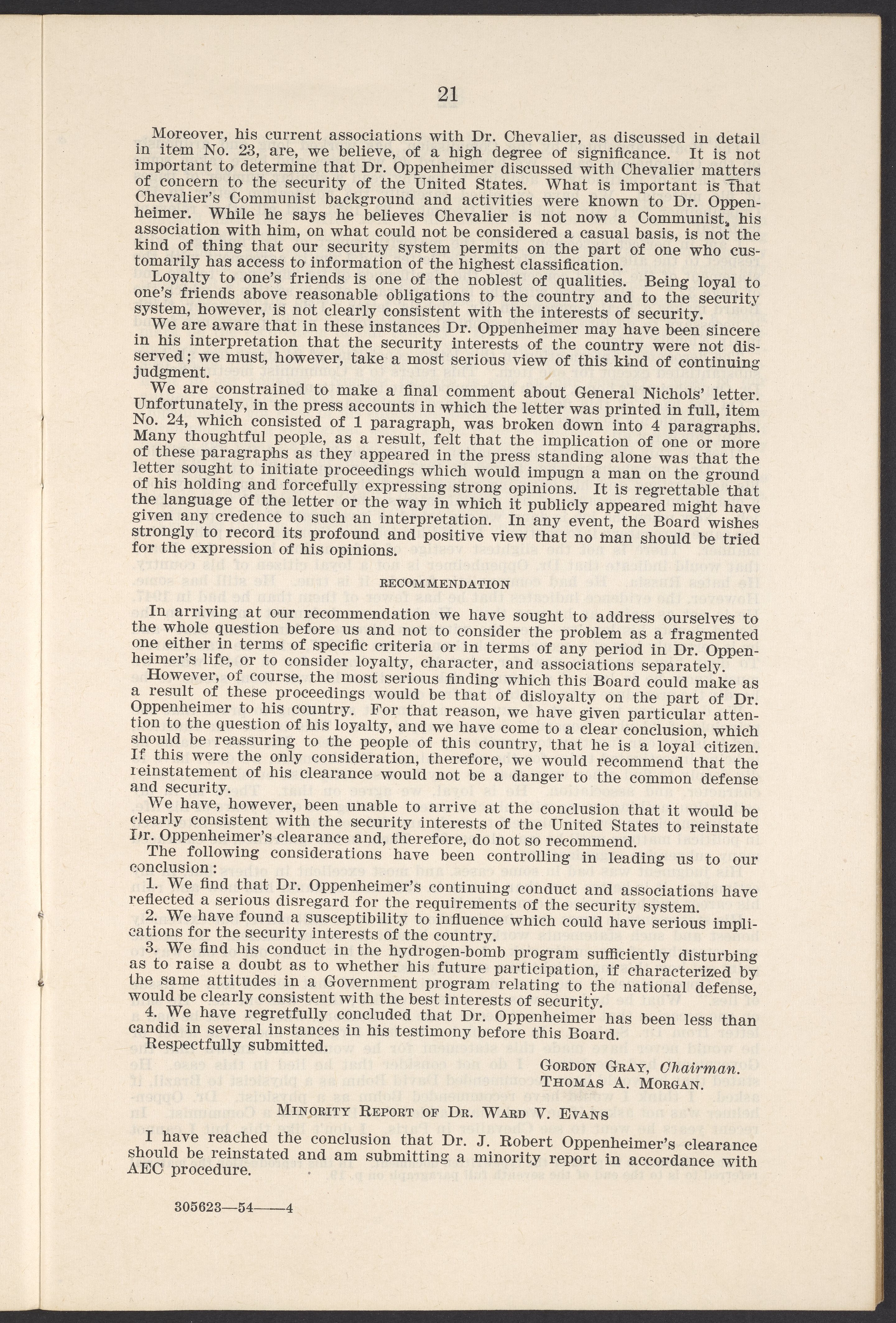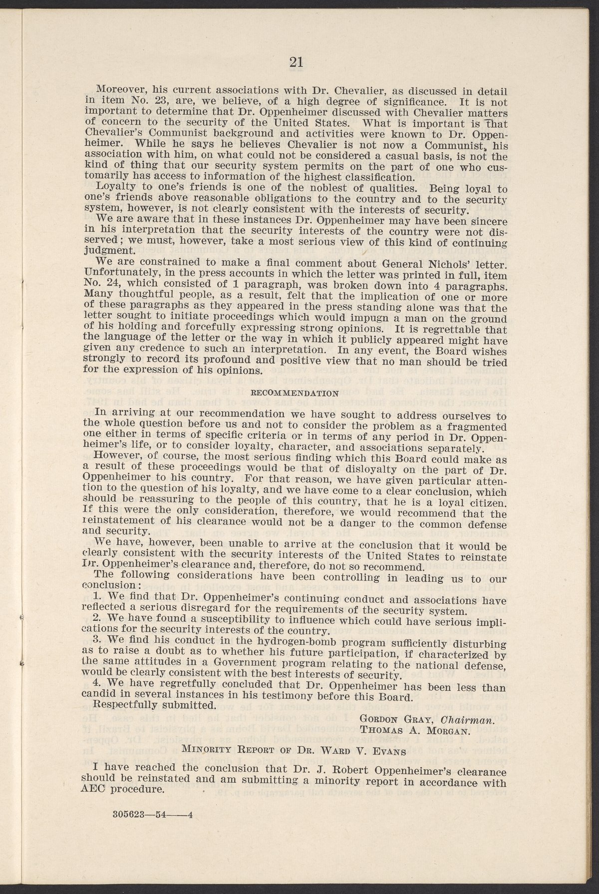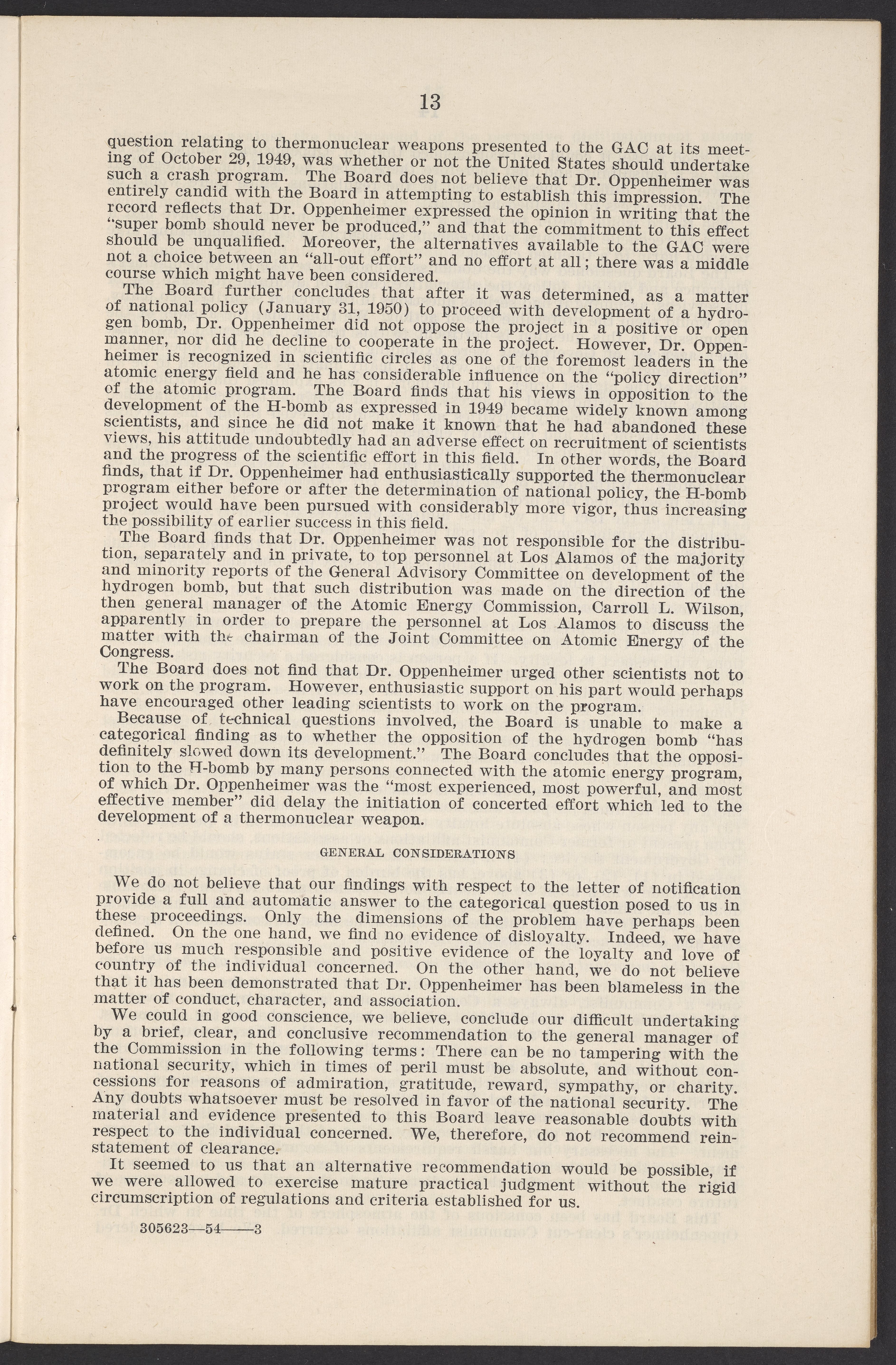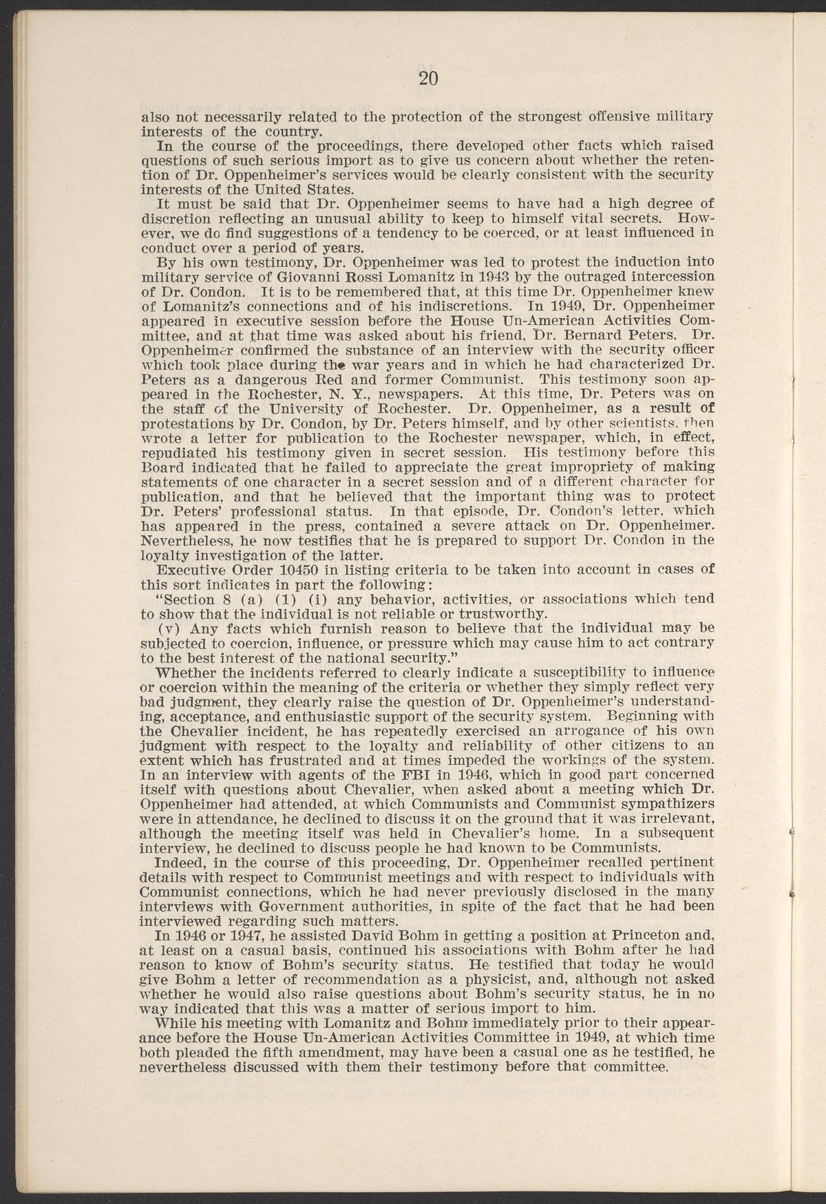 U.S. Atomic Energy Commission. “In the Matter of J. Robert Oppenheimer: Texts of Principal Documents and Letters of Personnel Security Board General Manager Commissioners.” Washington (D.C.): United States. Government Printing Office, 1954. Papers of Max Bredig, Box 8, Folder 42. Science History Institute. Philadelphia. https://digital.sciencehistory.org/works/uxuymyg.