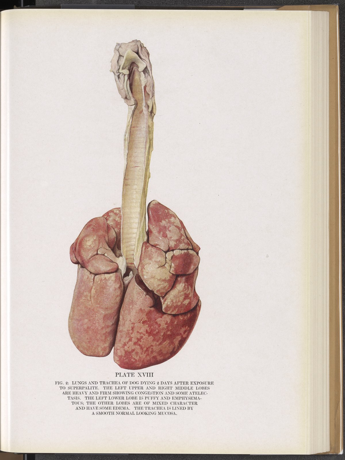 Plate XVIII (Fig. 2): Lungs and trachea of dog dying 2 days after exposure to superpalite.