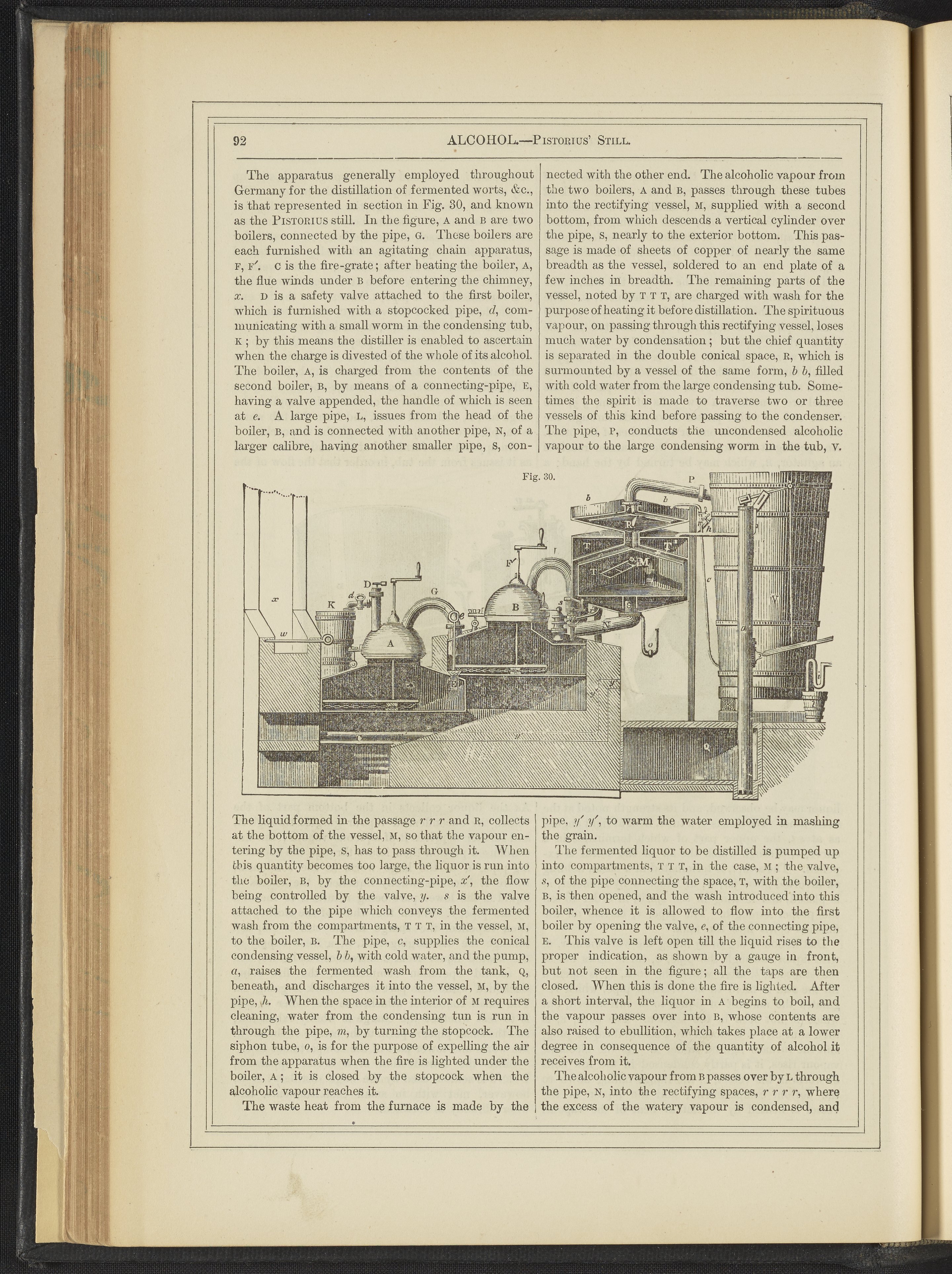 “Pistorius' Still for the Distillation of Alcohol.” In Encyclopædia of Chemistry, Theoretical, Practical, and Analytical, as Applied to the Arts and Manufacturers, Vol. I and II. Philadelphia, Pennsylvania: J.B. Lippincott & Co., 1877. https://digital.sciencehistory.org/works/v405s944q.