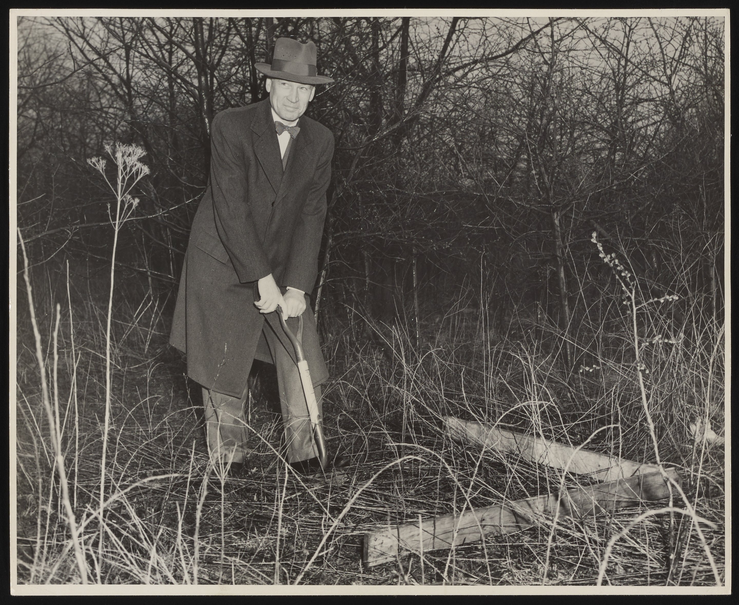 Houser, J. Linton. “Arnold O. Beckman Breaking Ground for a New Facility in Mountainside, New Jersey,” 1952. Beckman Historical Collection, Box 56, Folder 60. Science History Institute. Philadelphia. https://digital.sciencehistory.org/works/v692t629t.