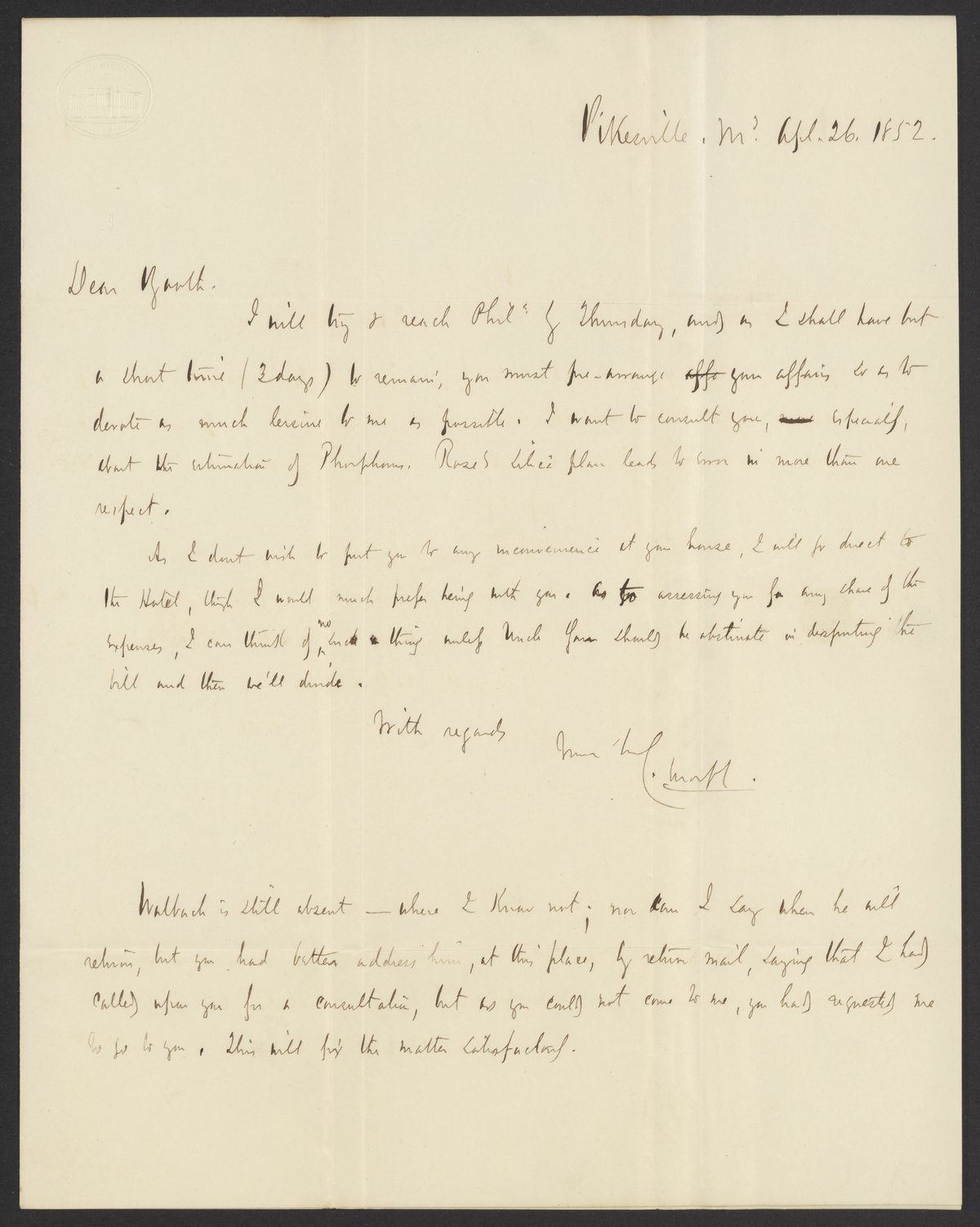 Letter from Campbell Morfit to James Curtis Booth, April 26, 1852
