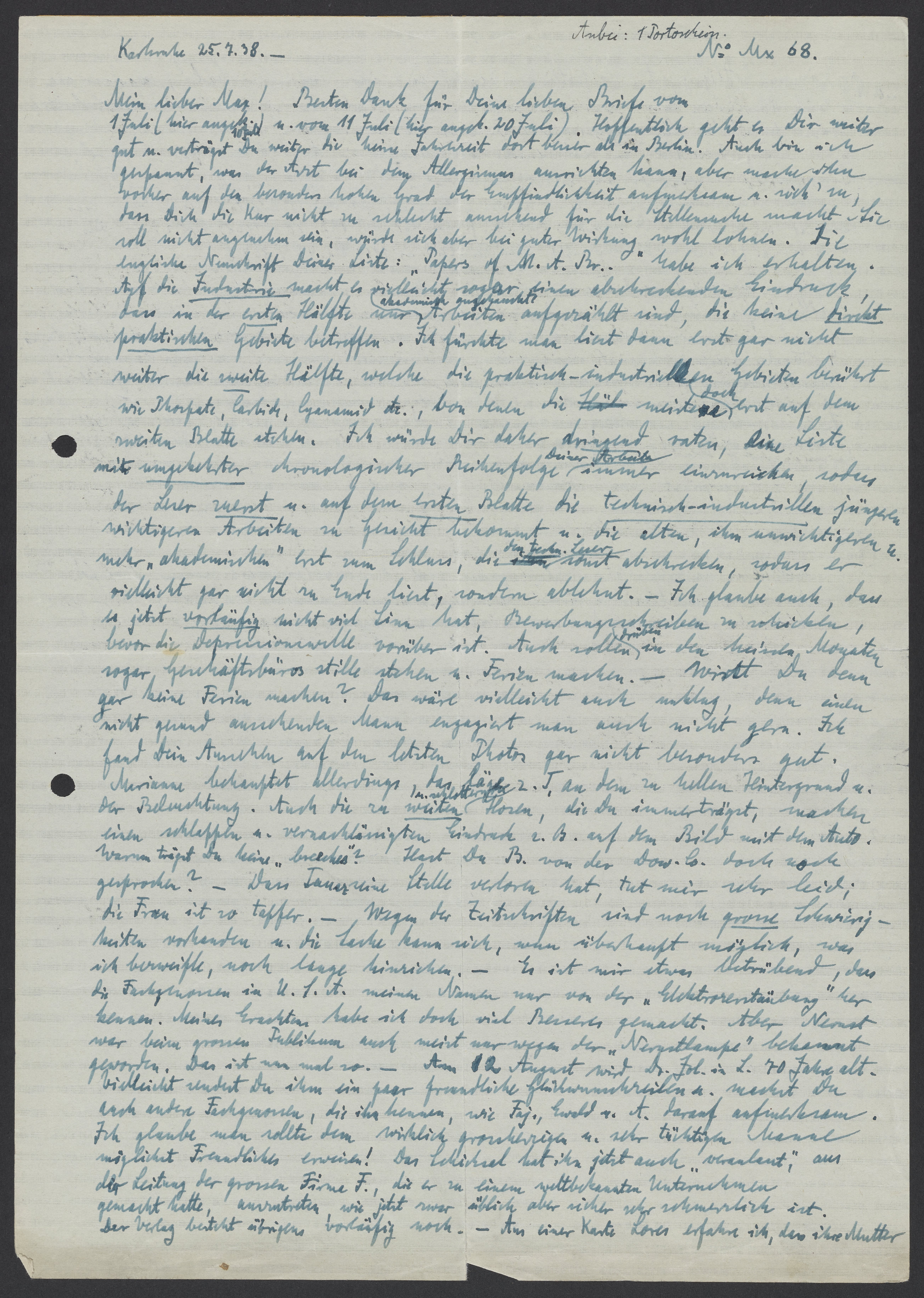 Bredig, Georg. “Letter from Georg Bredig to Max Bredig, July 25, 1938,” July 25, 1938. Papers of Georg and Max Bredig, Box 7, Folder 13. Science History Institute. Philadelphia. https://digital.sciencehistory.org/works/vceyusj.