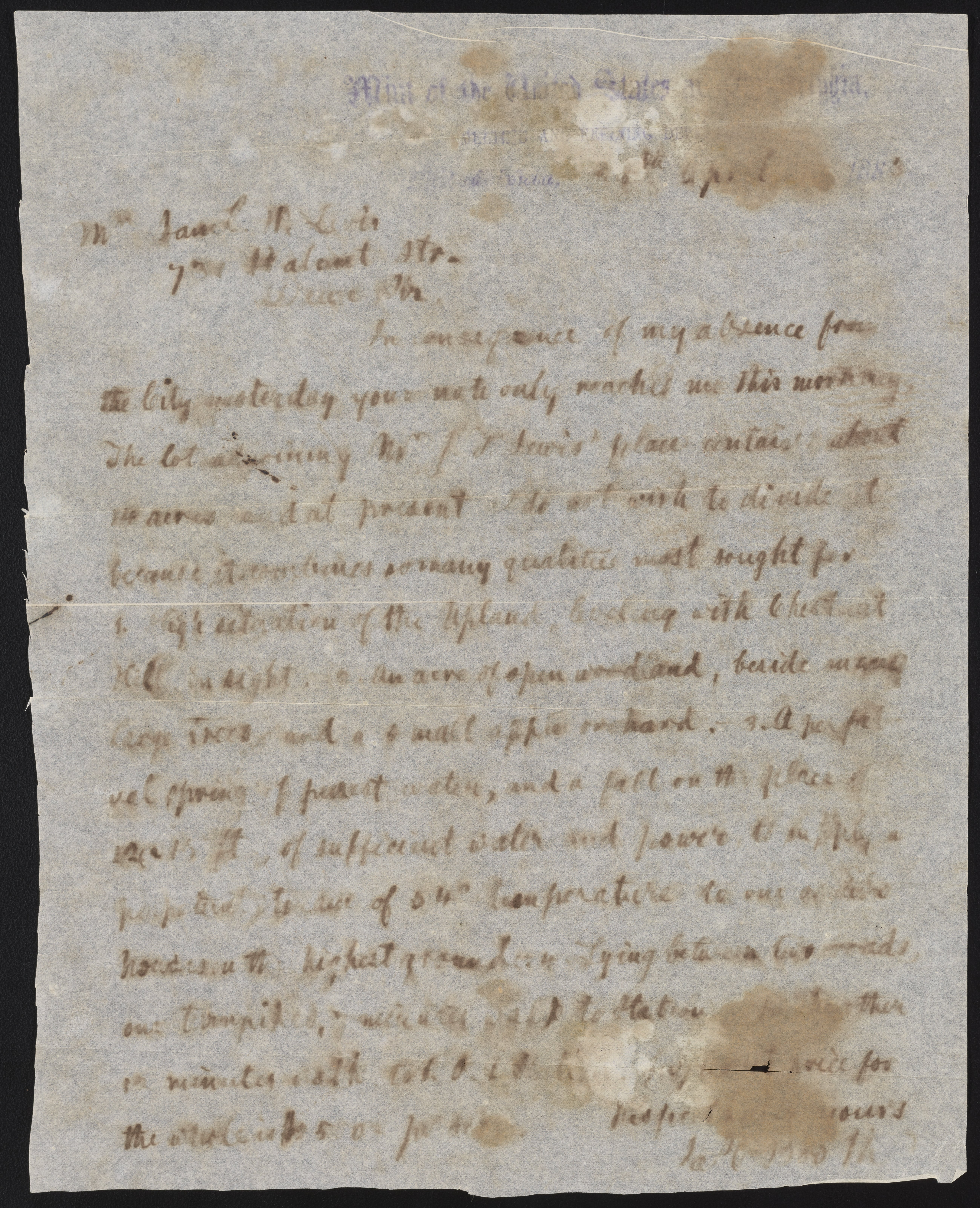 Letter from James Curtis Booth to Samuel W. Levis, April 8, 1883