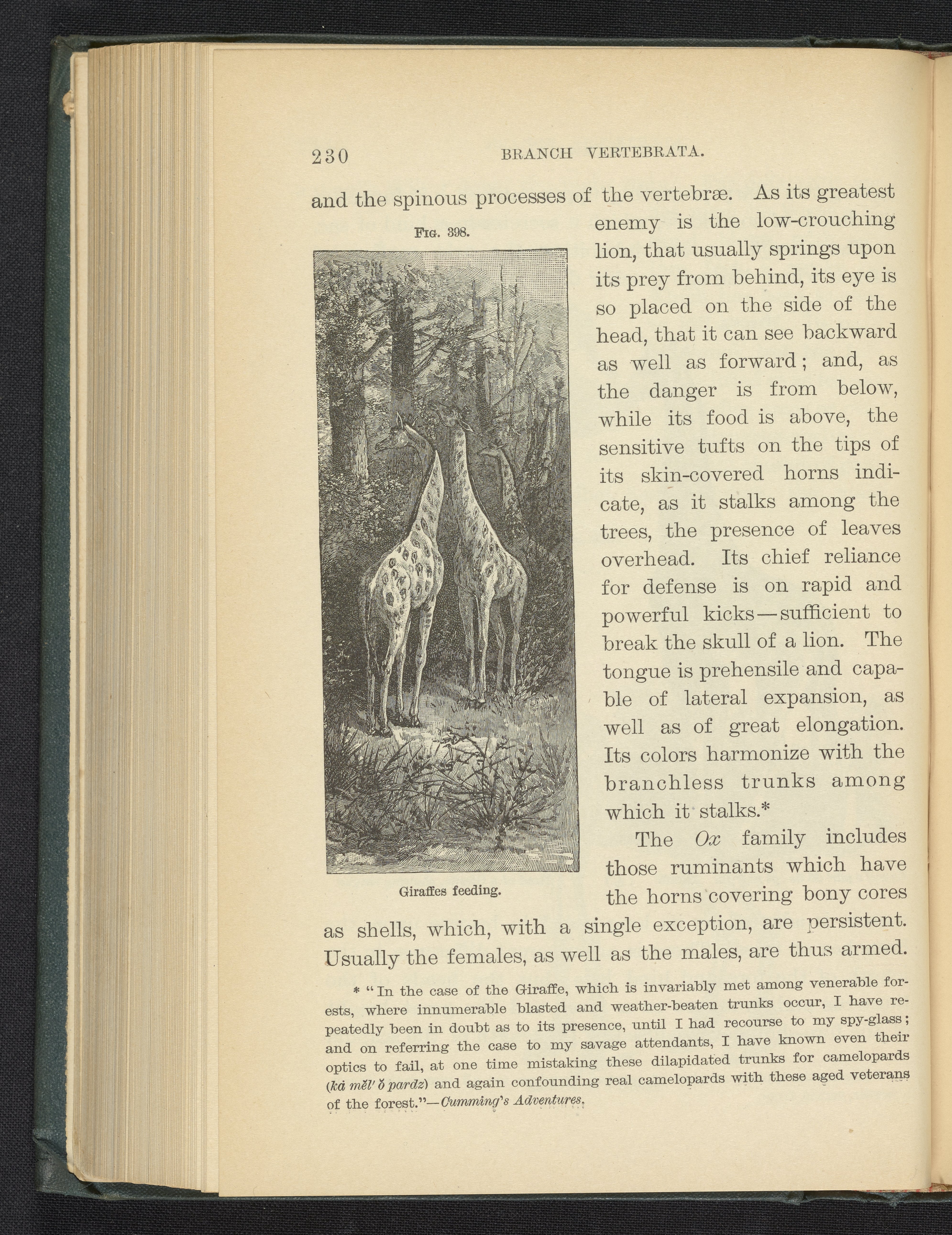 Figure 398 of the 1887 volume Popular Zoology depicting giraffes feeding.