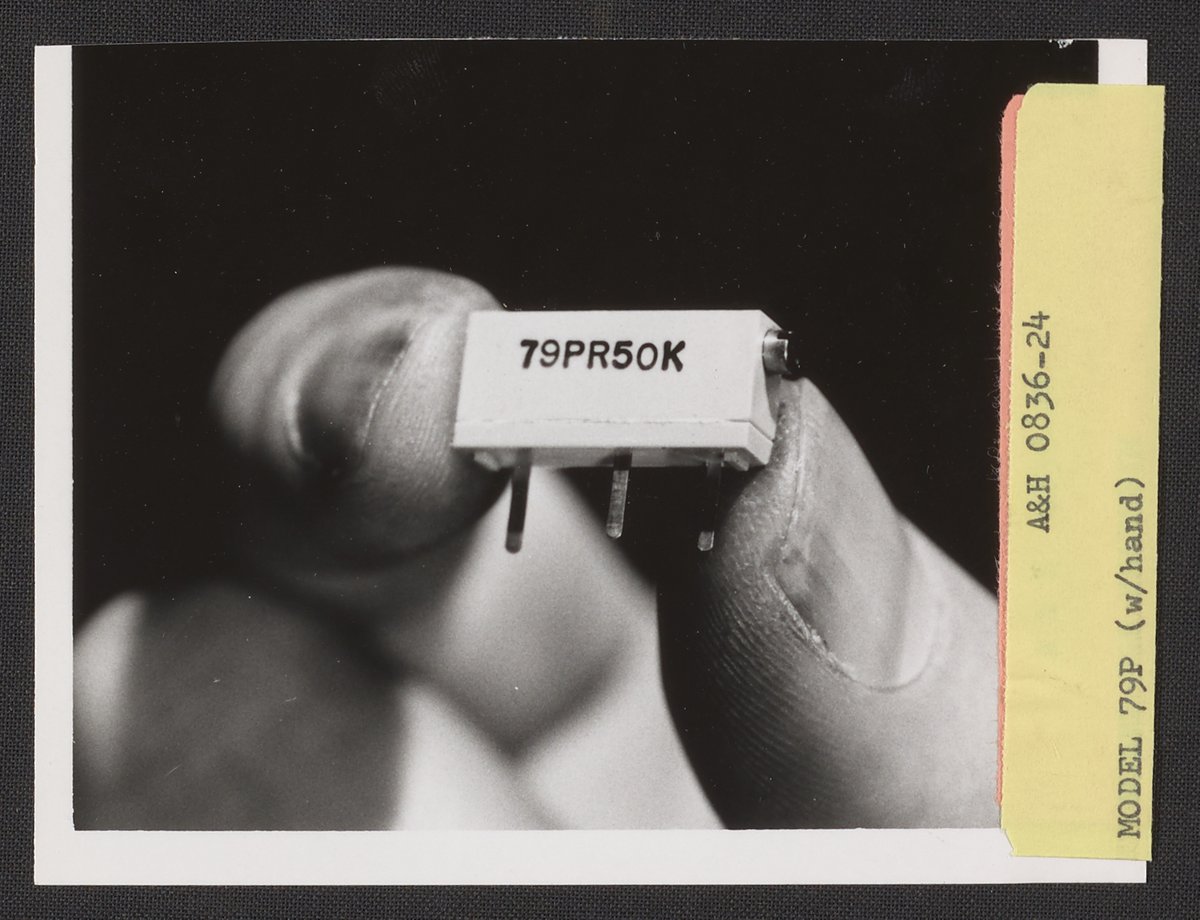 Hand holding a Helitrim Model 79P trimming potentiometer
