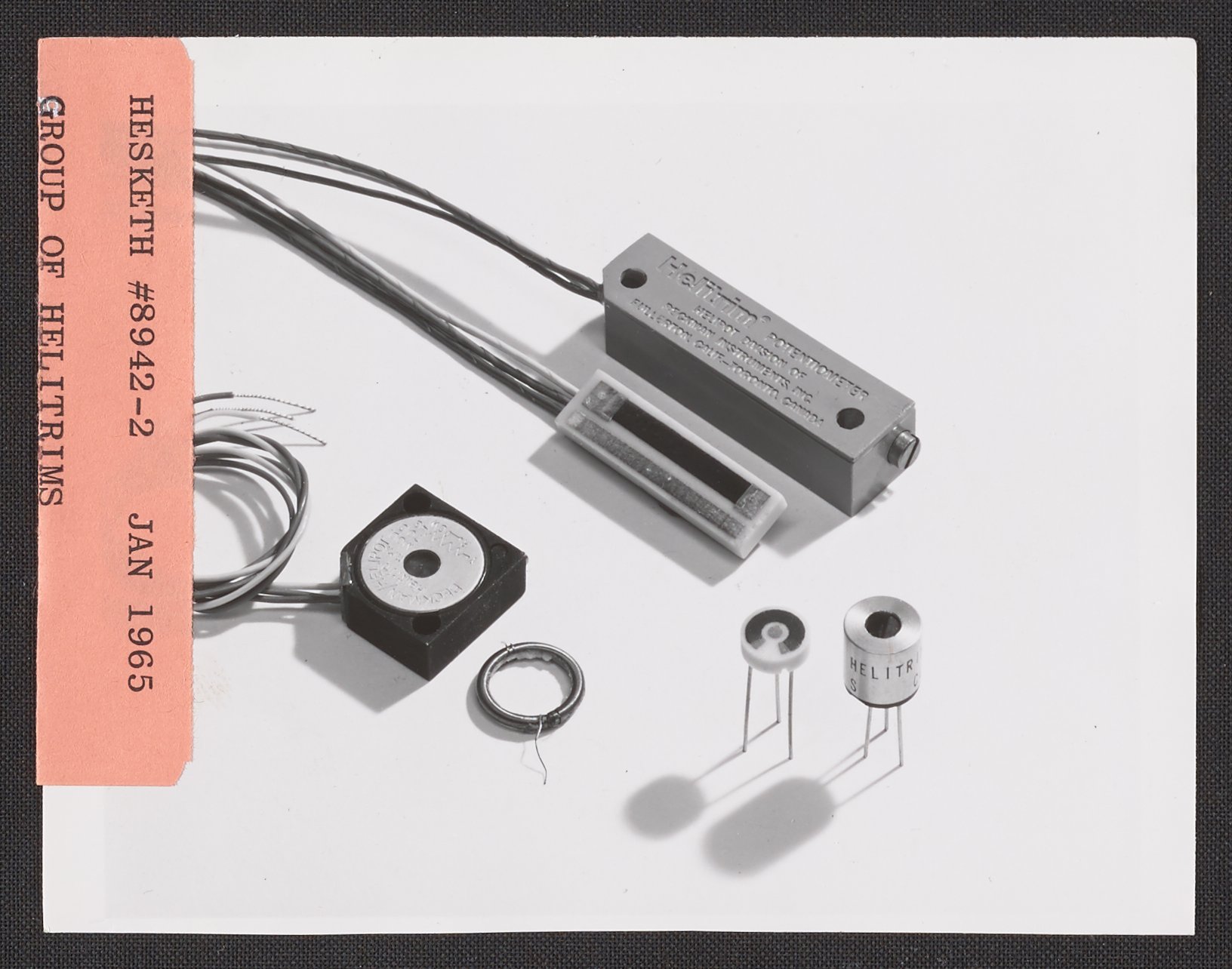 Hesketh, Dean D. “Group of Helitrim Trimming Potentiometers,” January 1965. Beckman Historical Collection, Box 85. Science History Institute. Philadelphia. https://digital.sciencehistory.org/works/vm40xr97t.