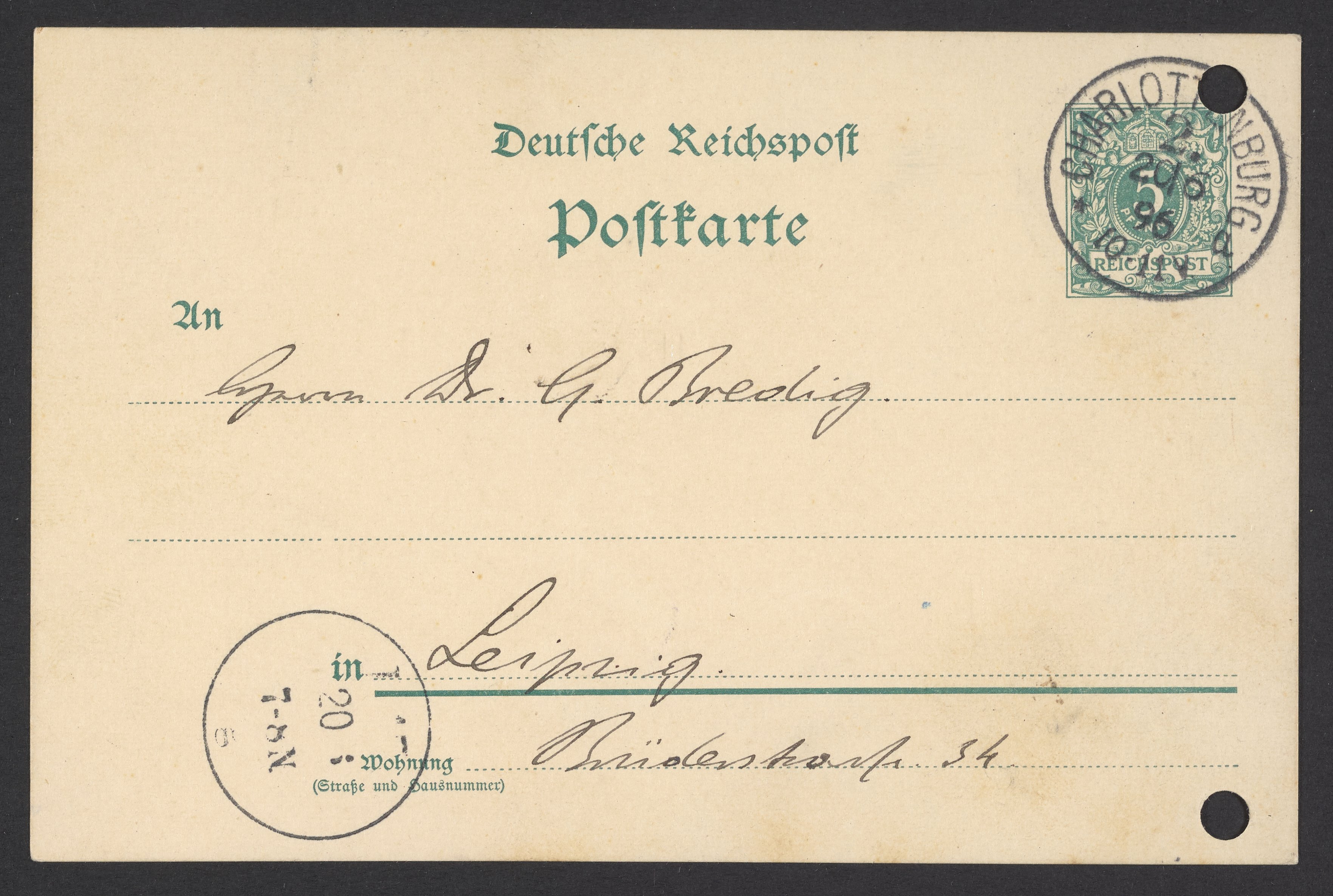 Postcard from Jacobus H. van 't Hoff to Georg Bredig, June 1896