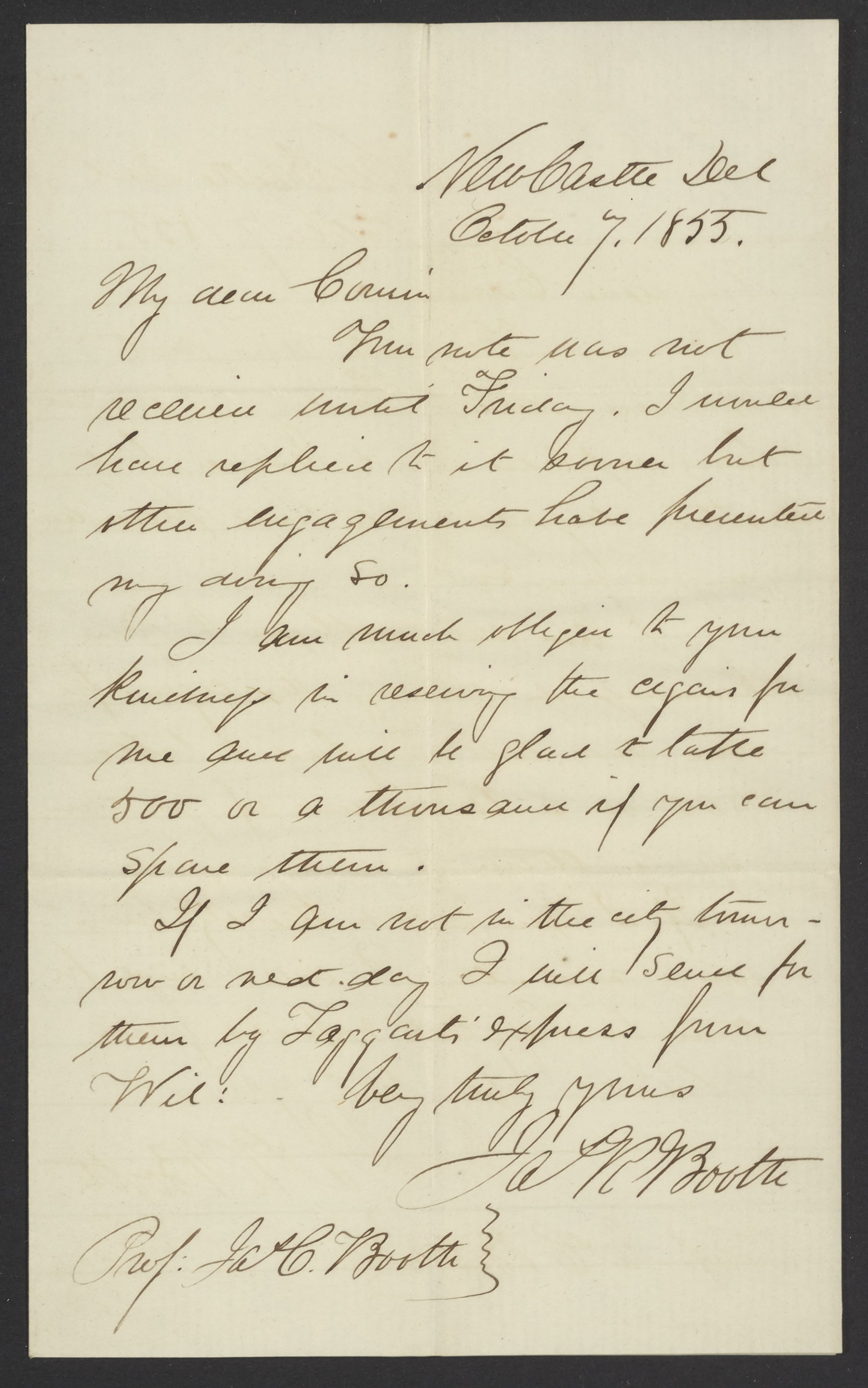 Booth, James R. “Letter from J.R. Booth to James Curtis Booth, October 7, 1855,” October 7, 1855. Papers of James Curtis Booth, Box 1, Folder 7. Science History Institute. Philadelphia. https://digital.sciencehistory.org/works/vmefbg2.