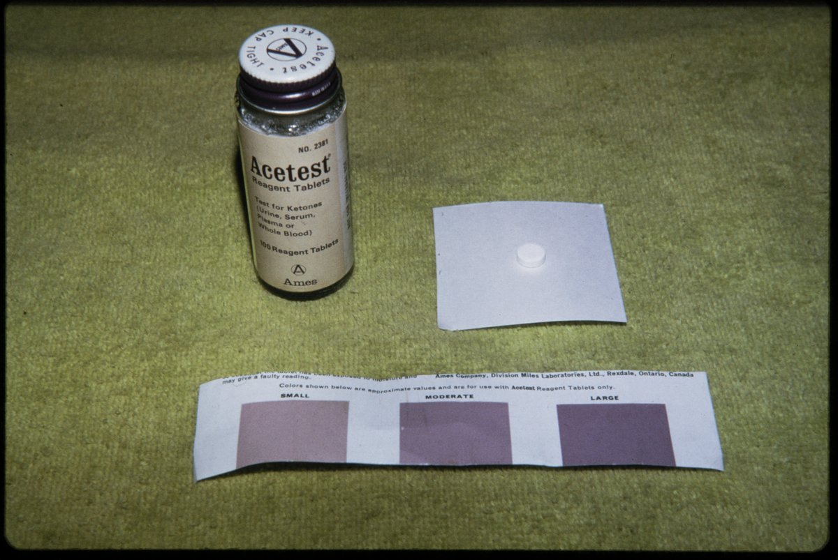 Small JPG1200 x 803px — 181 KBLarge JPG2880 x 1928px — 830 KBFull-sized JPG7552 x 5056px — 5.1 MBOriginal fileTIFF — 7552 x 5056px — 109 MBTwo photographs depicting a test for ketones in urine, serum, plasma, and whole blood using Acetest Reagent Tablets manufactured by the Ames Company. Included in the photographs are a color chart used to analyze the result.