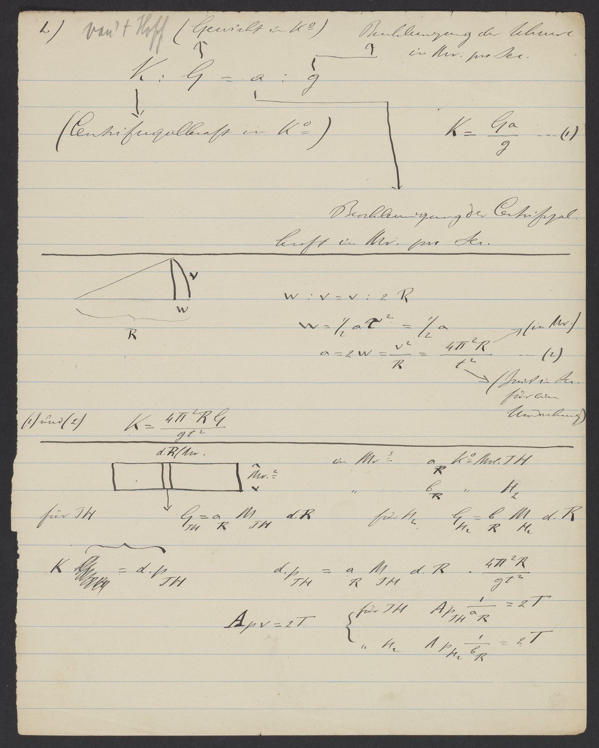 Small JPG1200 x 1498px — 234 KBLarge JPG2880 x 3595px — 1.2 MBFull-sized JPG4190 x 5230px — 2.4 MBOriginal fileTIFF — 4190 x 5230px — 62.8 MBNotes handwritten by Dutch physical chemist, Jacobus H. van’t Hoff (1852-1911). Van’t Hoff was the first winner of the Nobel Prize in chemistry in 1911 and is considered to be one of the lead pioneers of the field of physical chemistry.