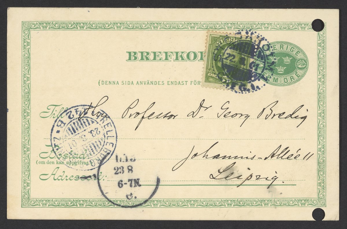 Postcard from Svante Arrhenius to Georg Bredig, August 1901