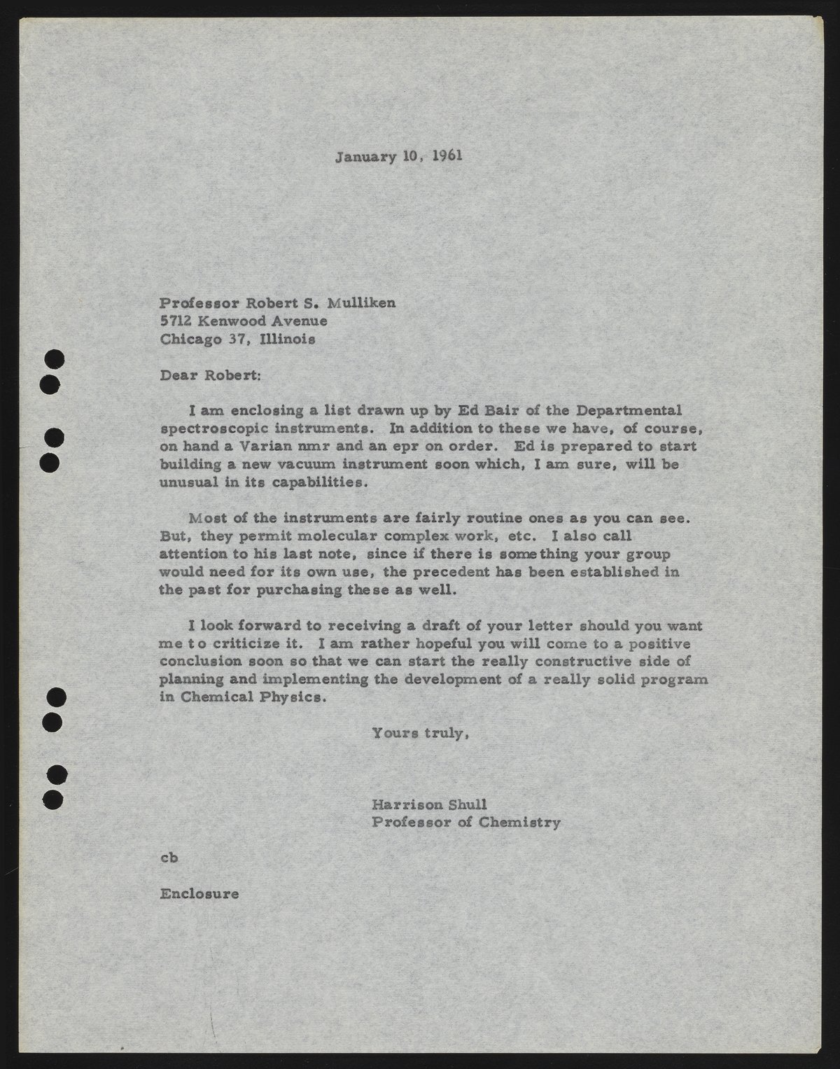 Letter from Robert S. Mulliken to Harrison Shull, 1961