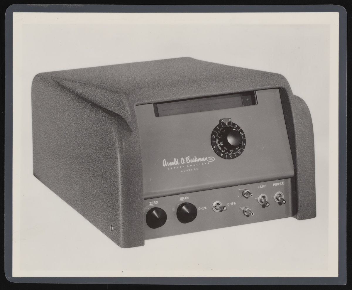 Armstrong & Hess. “Beckman Model E2 Oxygen Analyzer,” 1960–1969. Beckman Historical Collection, Box 59, Folder 31. Science History Institute. Philadelphia. https://digital.sciencehistory.org/works/vt150j69j.