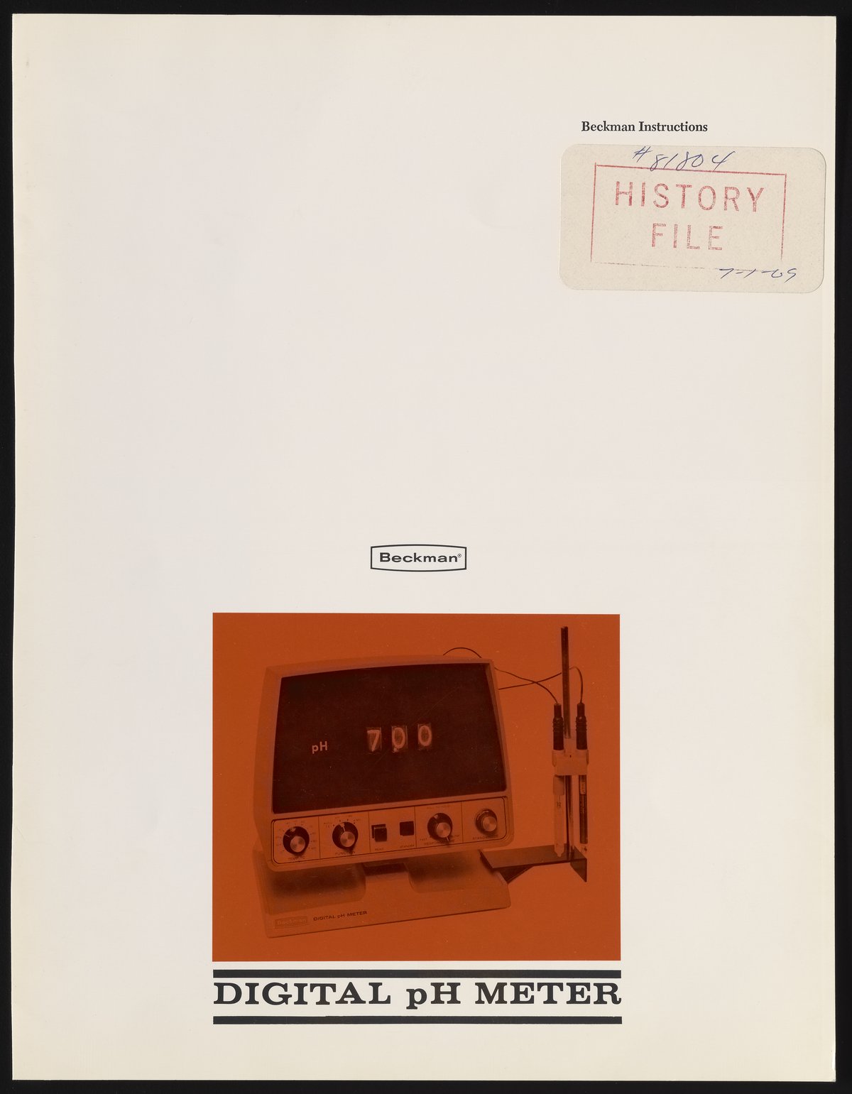 Beckman Instruments, Inc. “Beckman Digital PH Meter,” June 1969. Beckman Historical Collection, Box 111, Folder 54. Science History Institute. Philadelphia. https://digital.sciencehistory.org/works/vt150j93m.