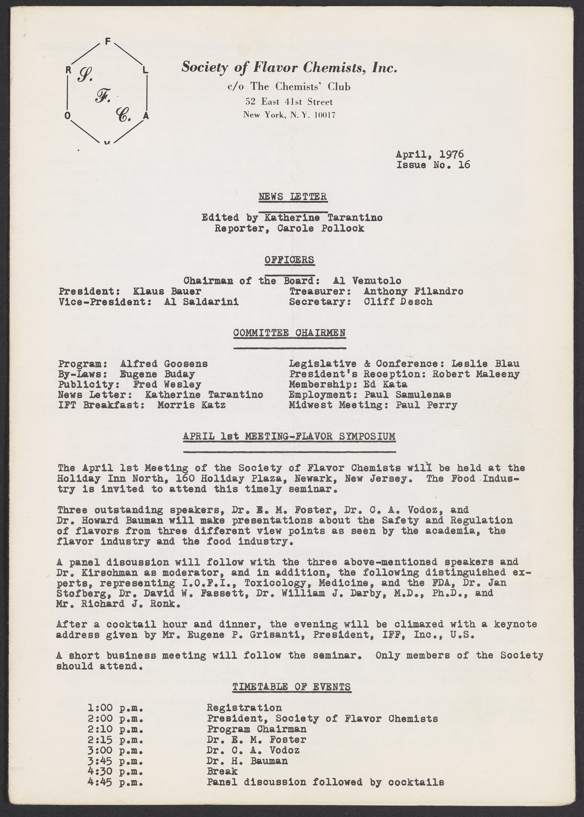 Society of Flavor Chemists newsletter, April 1976